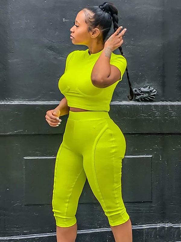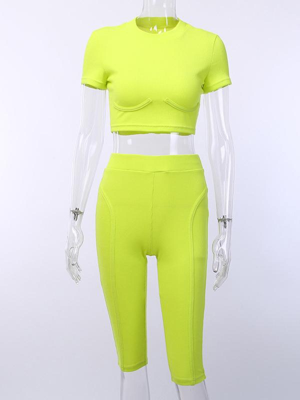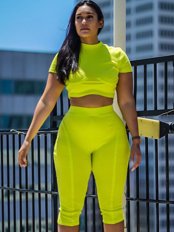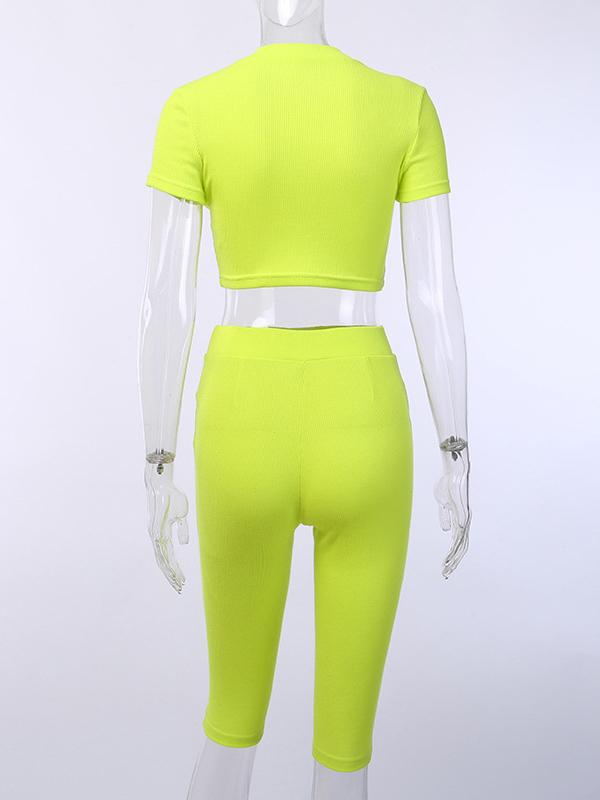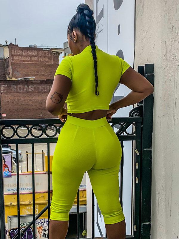 Solid High-neck Tops Wrap Shorts Sports Suits