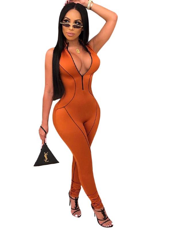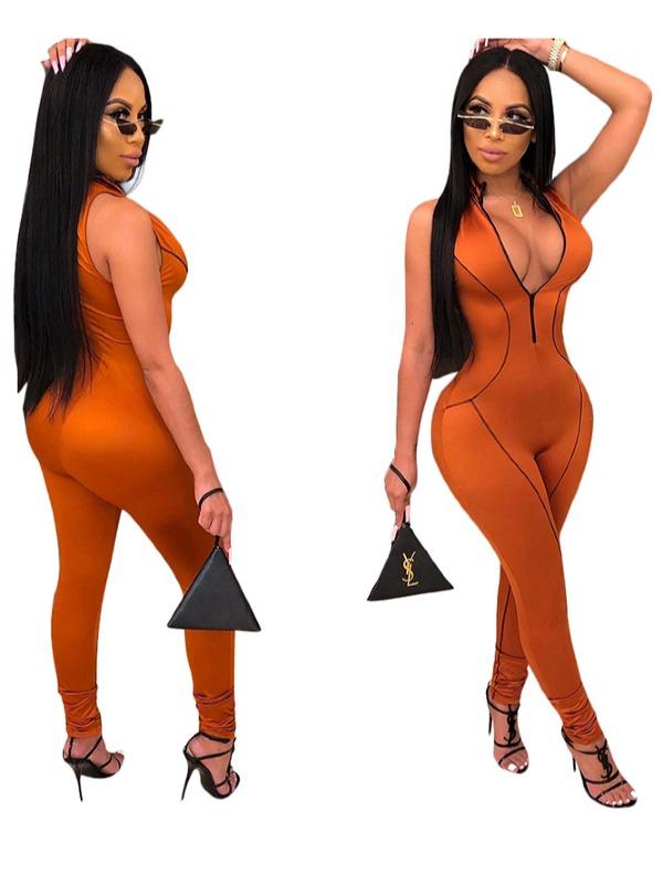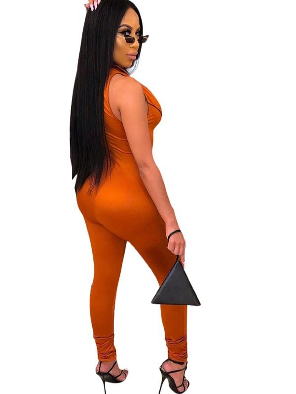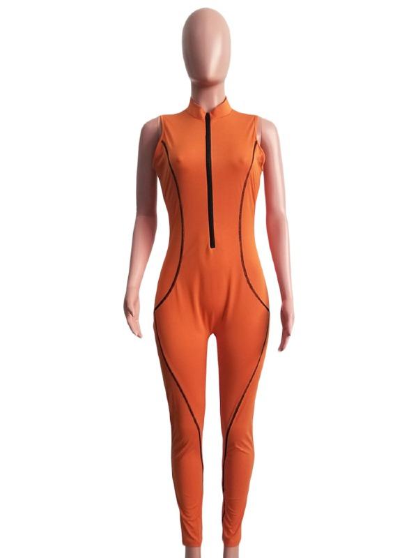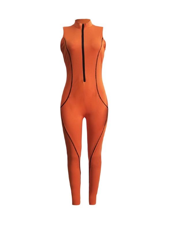 Solid High Waist Zipper Breathable Yoga&Gym Jumpsuits ACTIVE WEAR