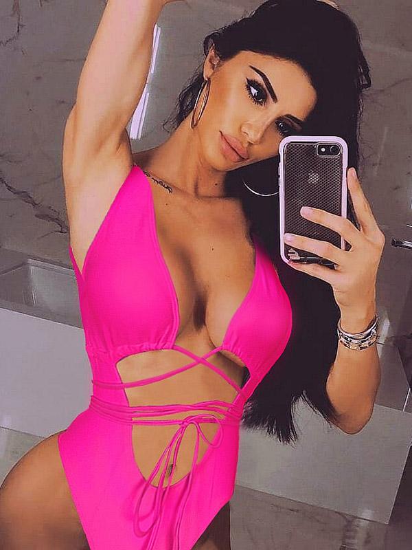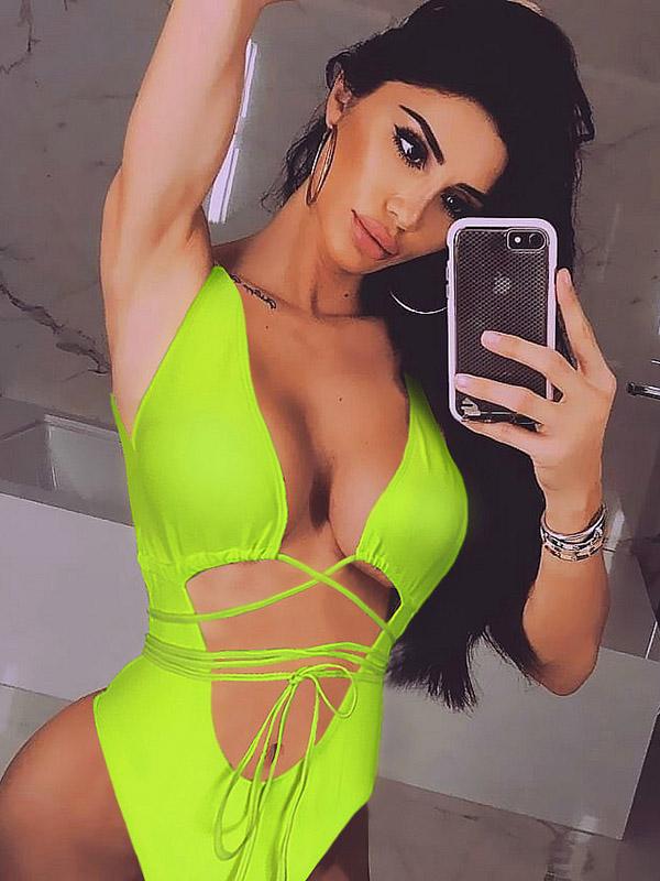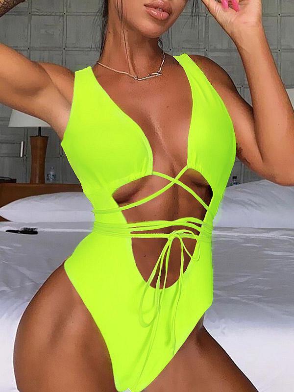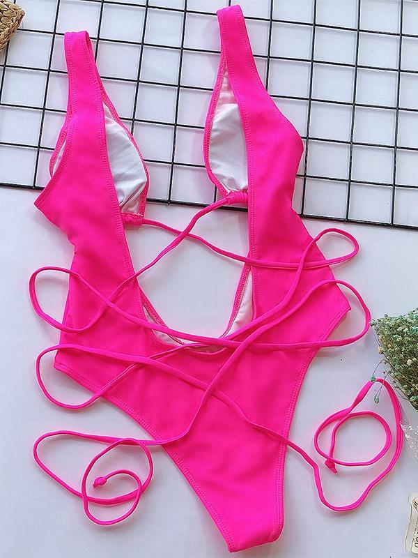 Solid Hollow Straps One-Piece Swimsuit