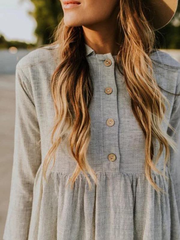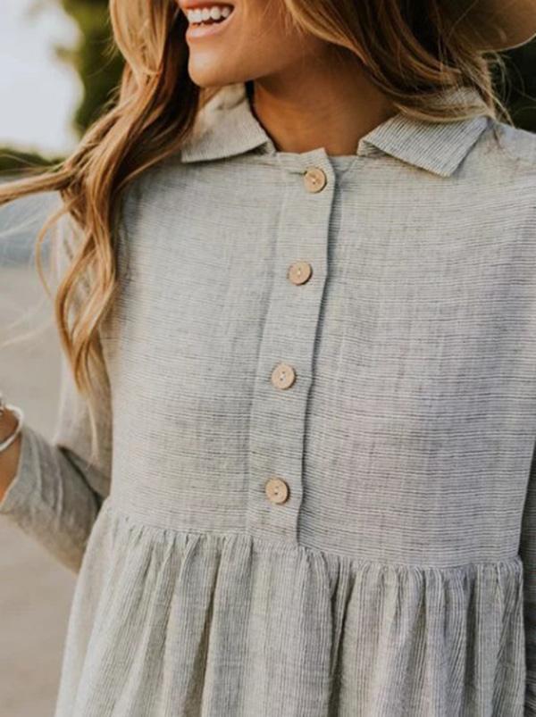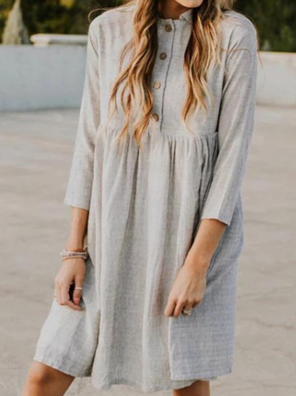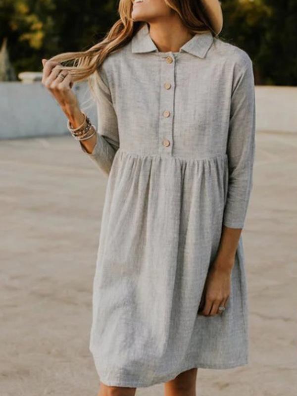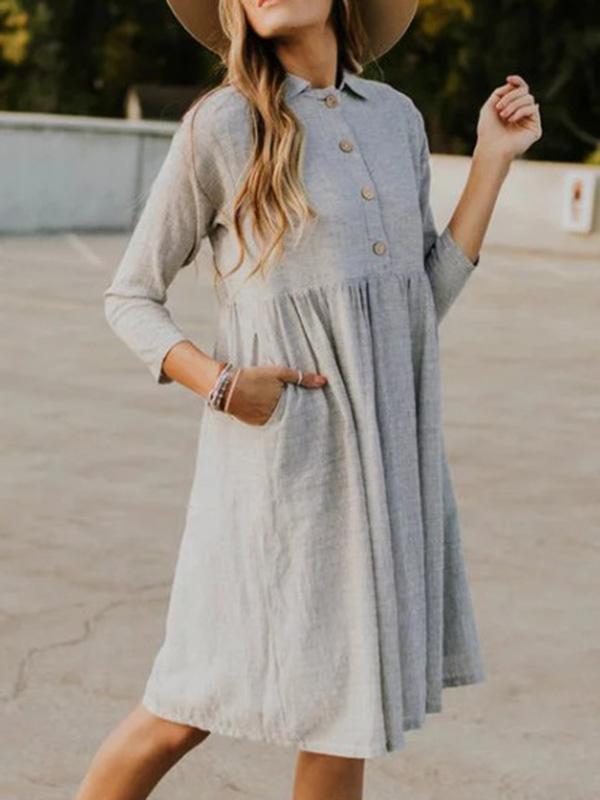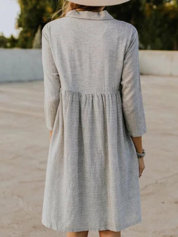 Solid Lapel Seven Sleeves Midi Dress