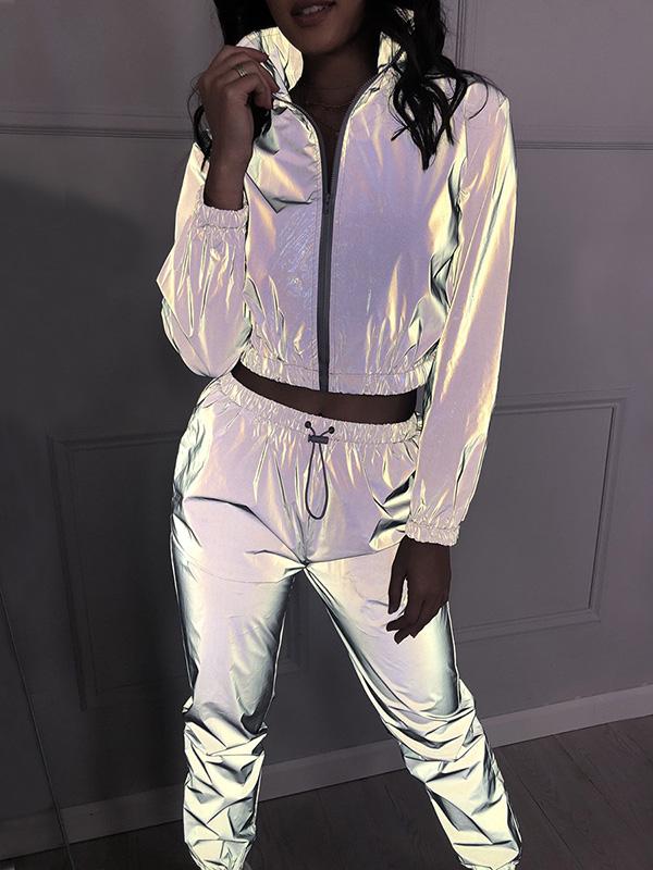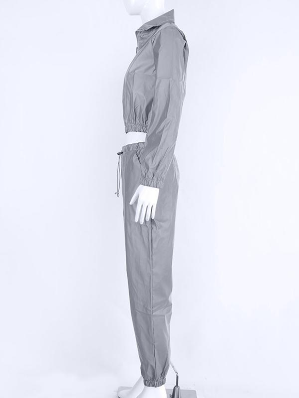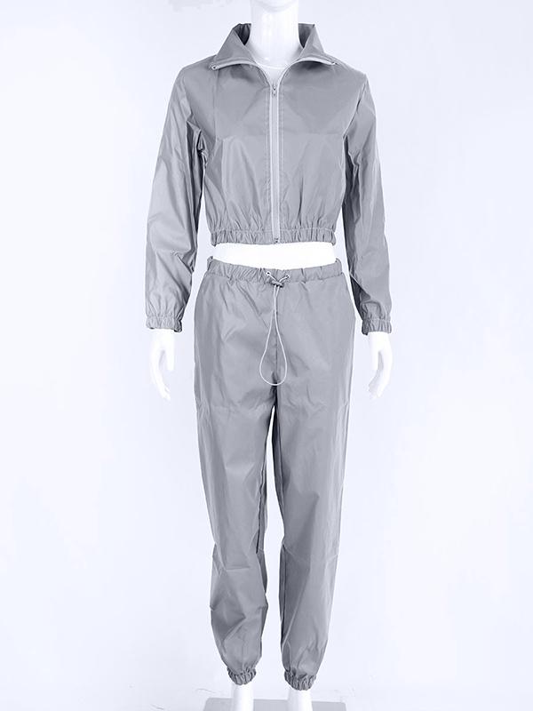 Solid Long Sleeve Jacket And Drawstring Sport Pants Suits