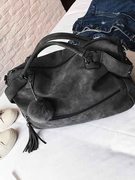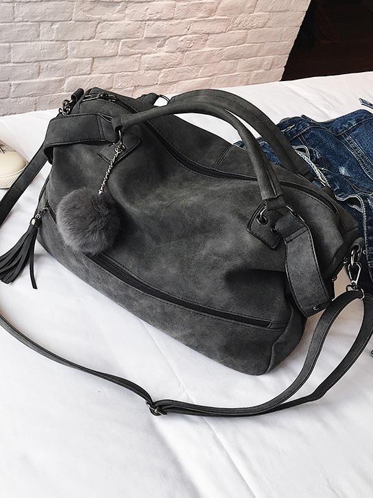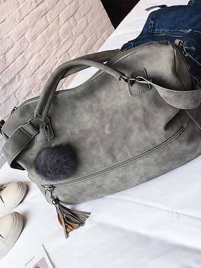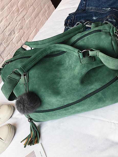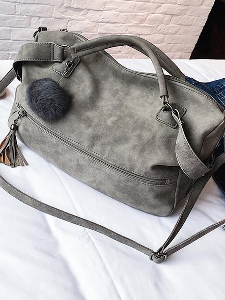 Solid Pompom Trimming Shoulder Bag