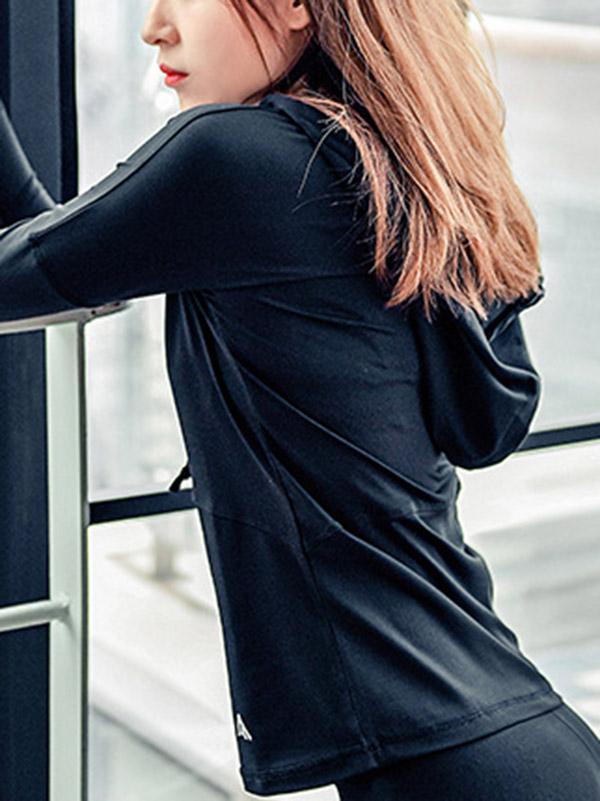 Solid Quick Dry Zipper Hooded Sports Hoodies&Sweatshirt