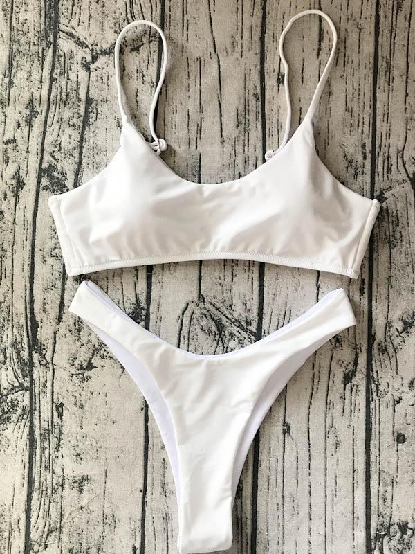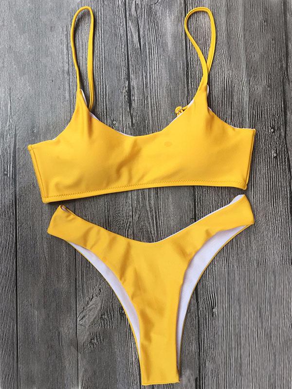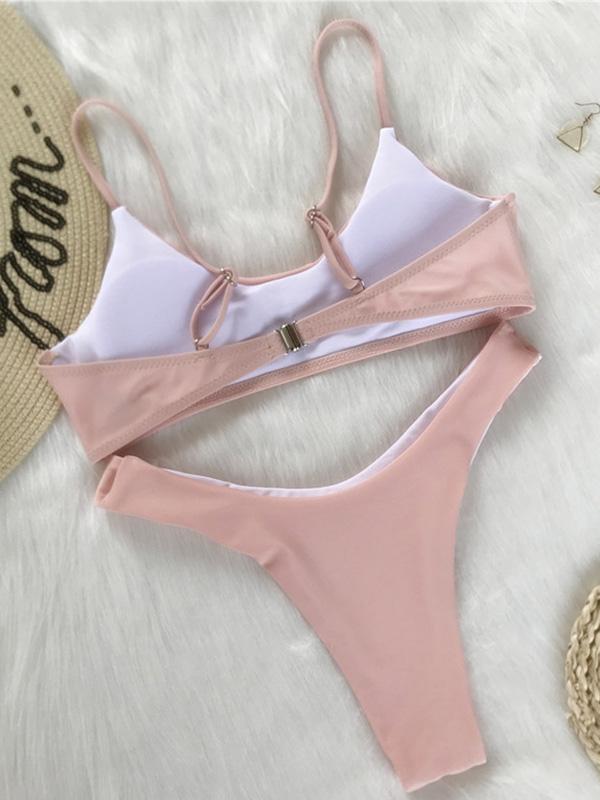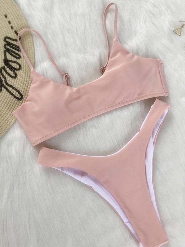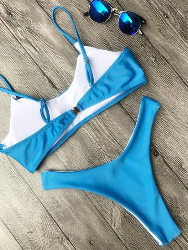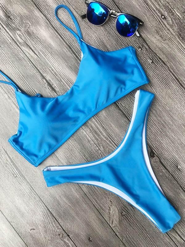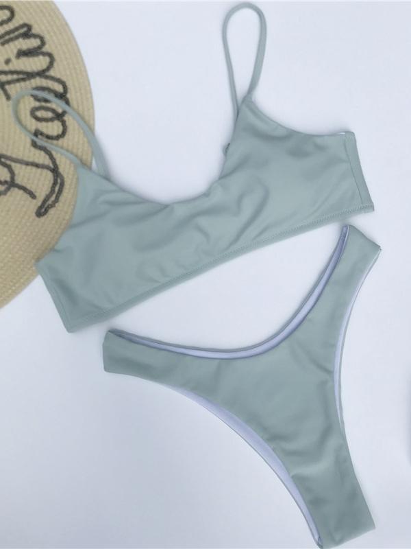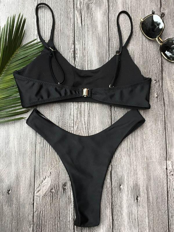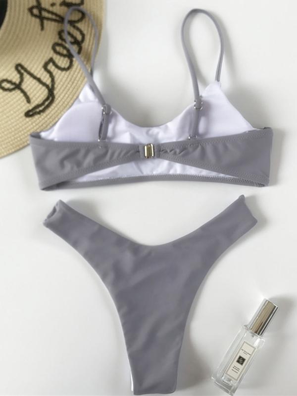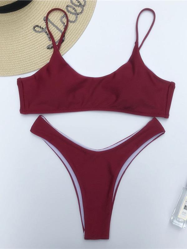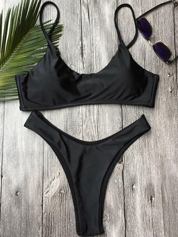 Solid Round-Neck Plunge Top With Hipster Bikini Set