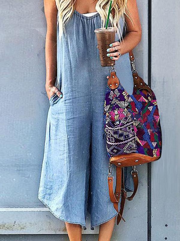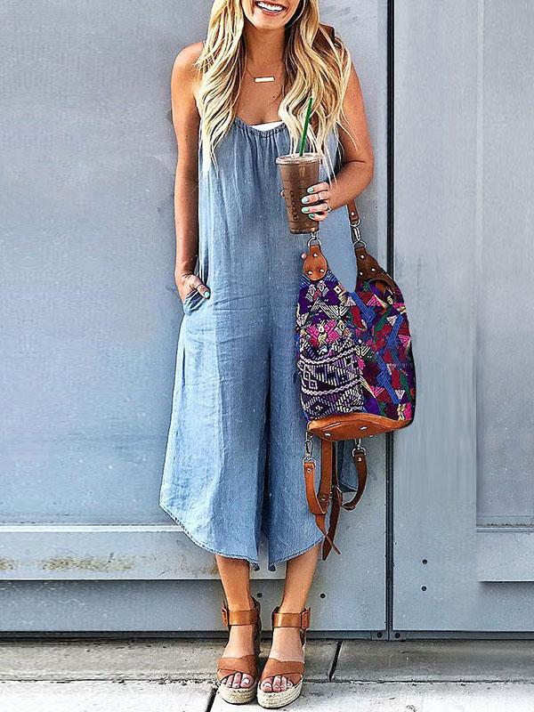 Solid Spaghetti-neck Wide Leg Jumpsuits