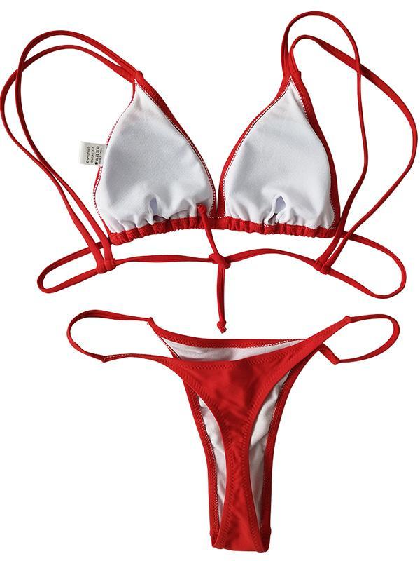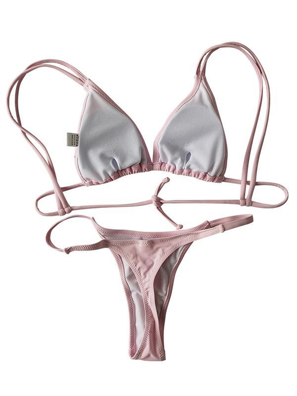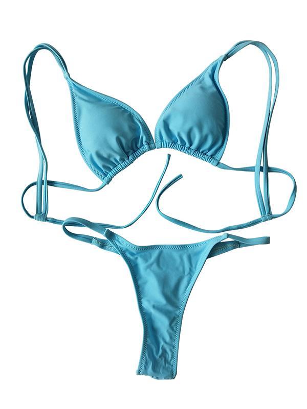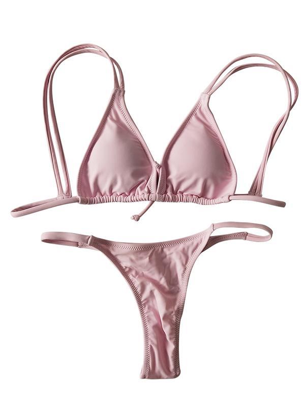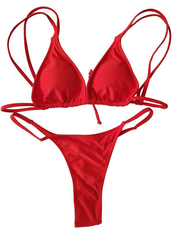 Solid Spaghetti Straps Bikinis Swimwear