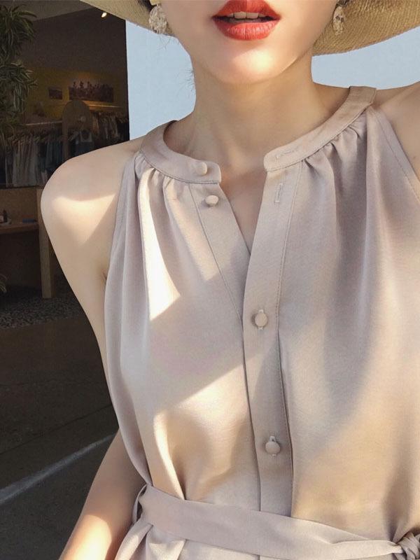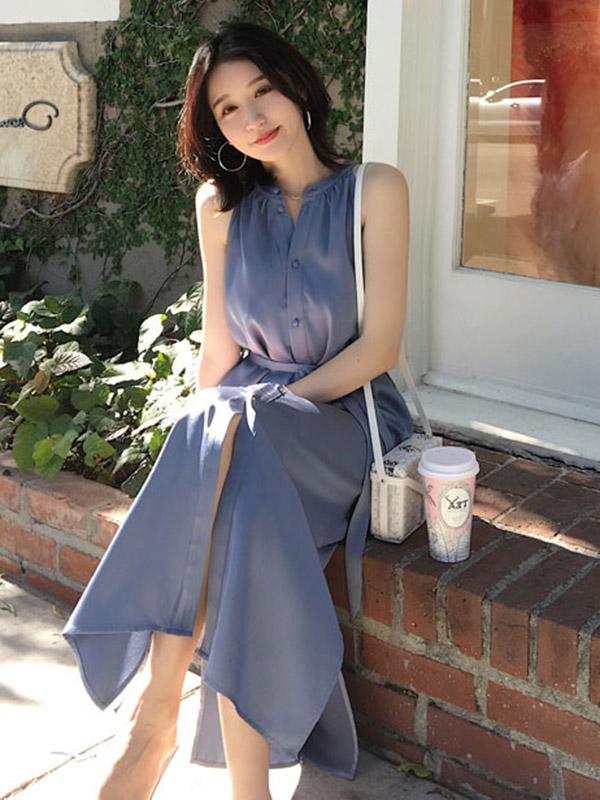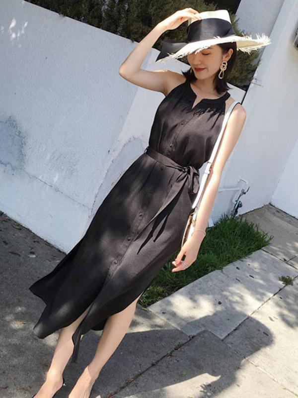 Solid V-neck Sleeveless Dress