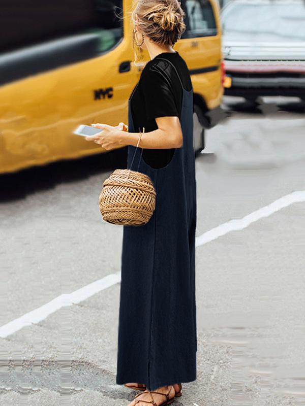 Spagetti-neck Loose Long Jumpsuits