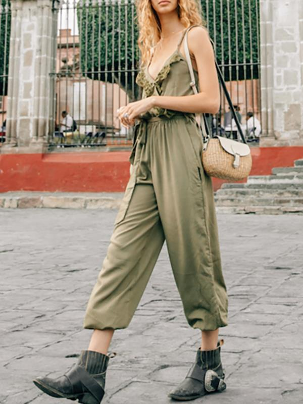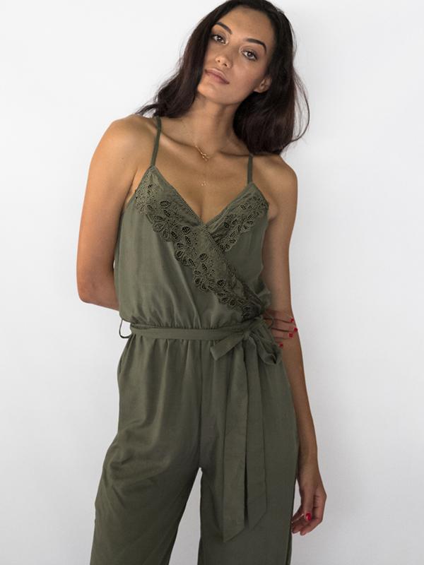 Spaghetti-neck Belted Lacy Jumpsuits