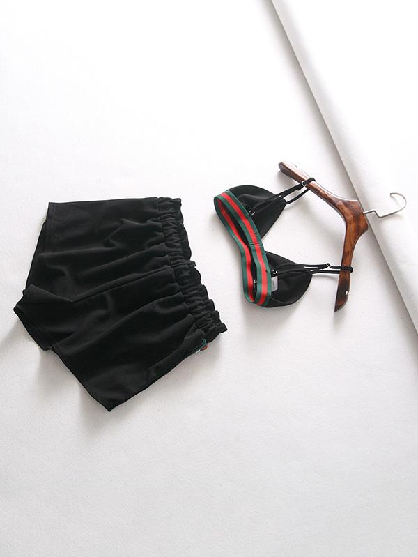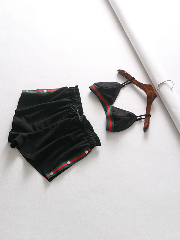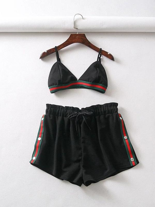 Spaghetti-neck Contrast Trim Bra And Shorts Sport Suits