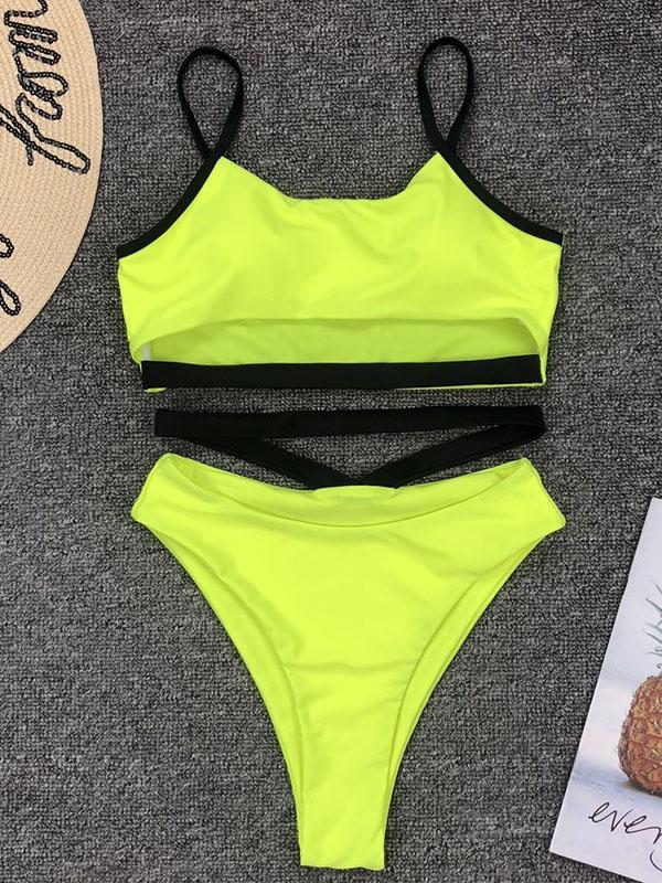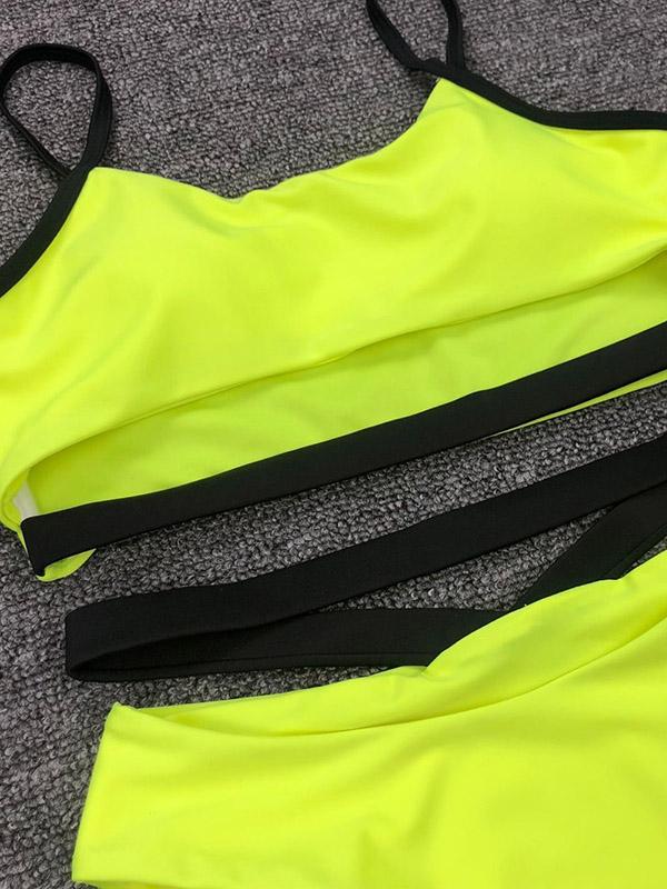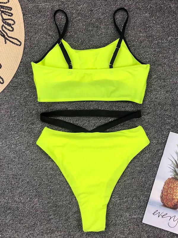 Spaghetti-neck Fluorescein Bikini Swimsuit