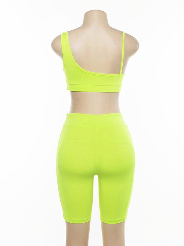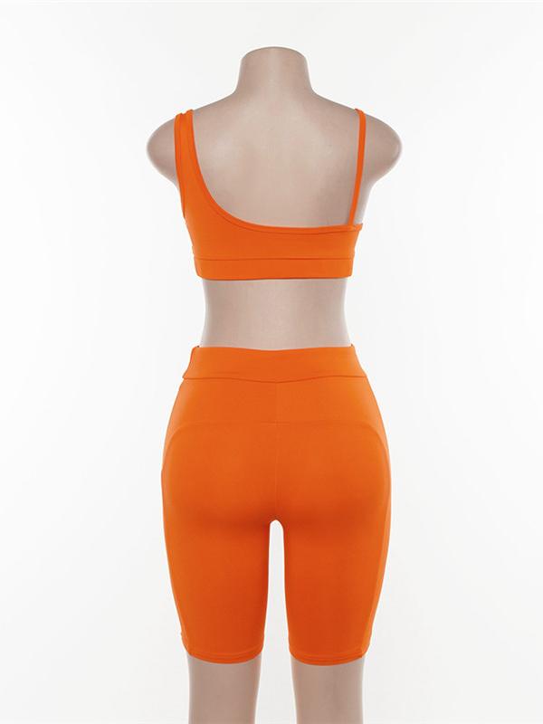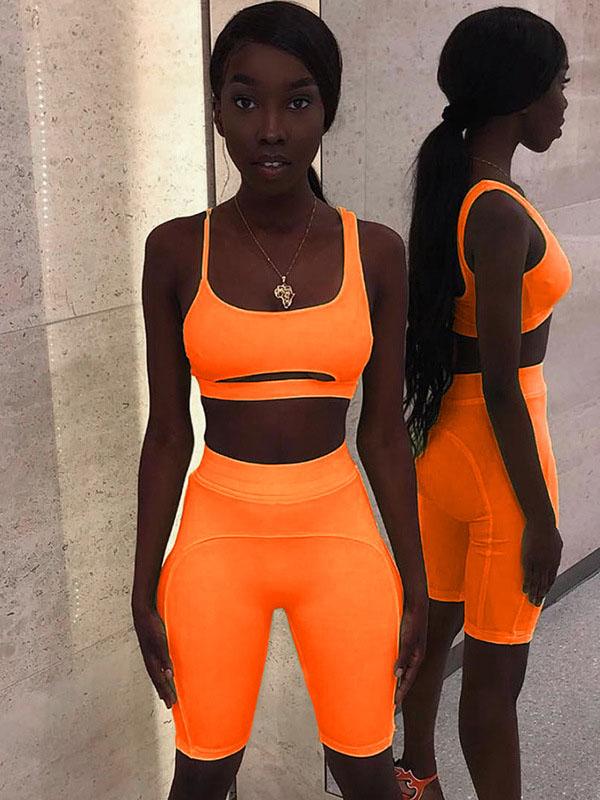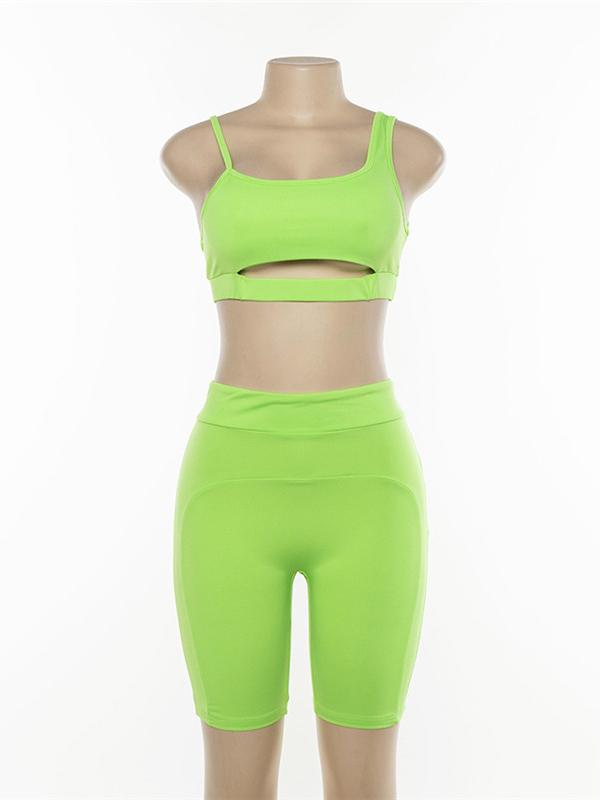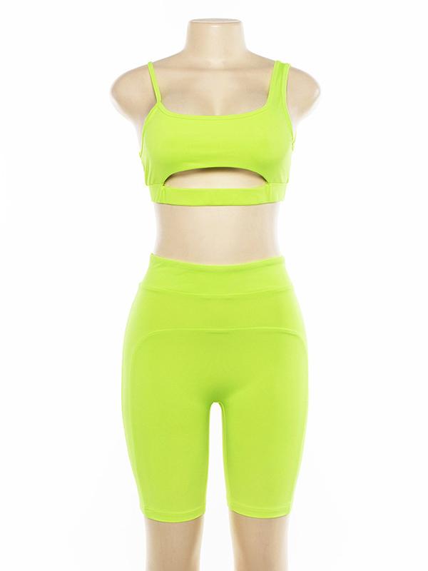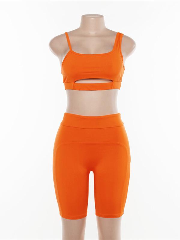 Spaghetti-neck Hollow Tank And Shorts Workout Suits