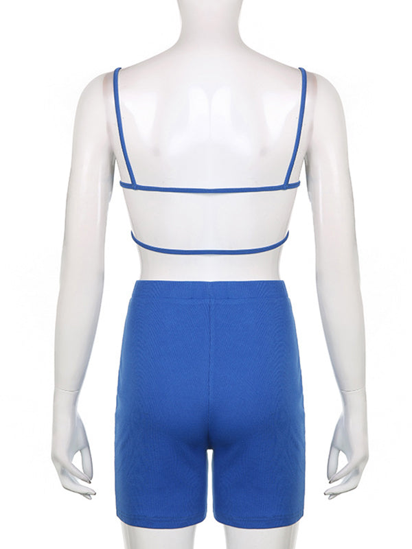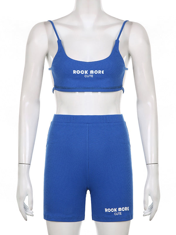 Spaghetti-Neck Letter Print Vest&Shorts Suits