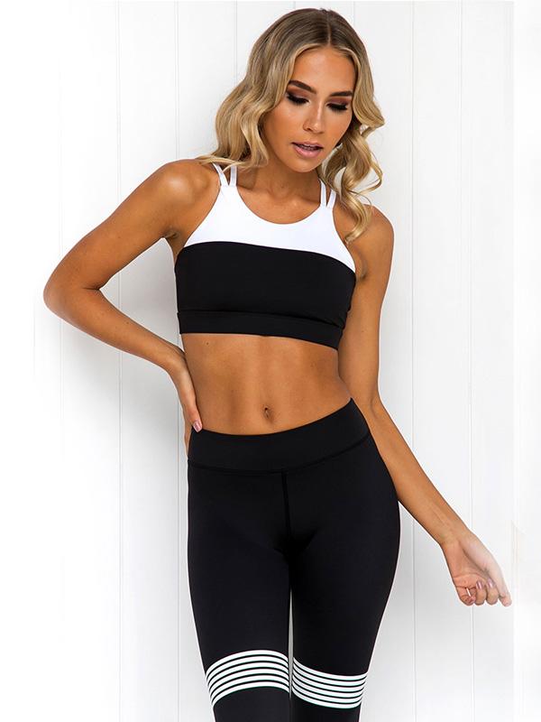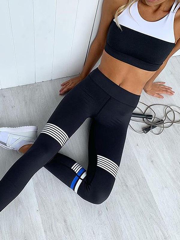 Spaghetti-neck Striped Printed Tank Sports Yoga Suit