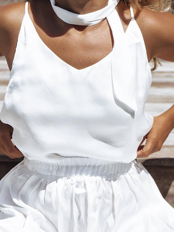 Spaghetti-neck T-shirt&Elastic Waist Casual Pants