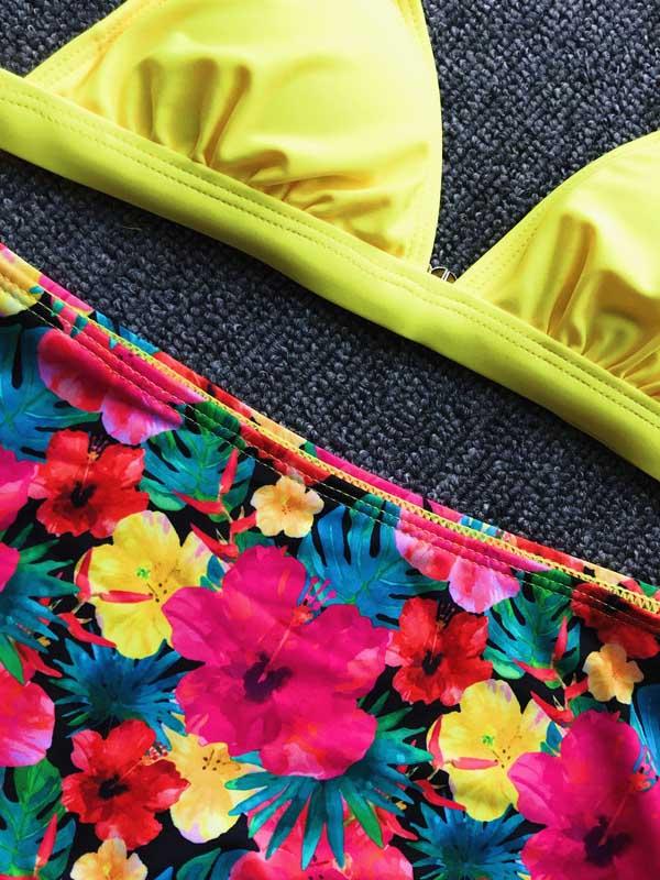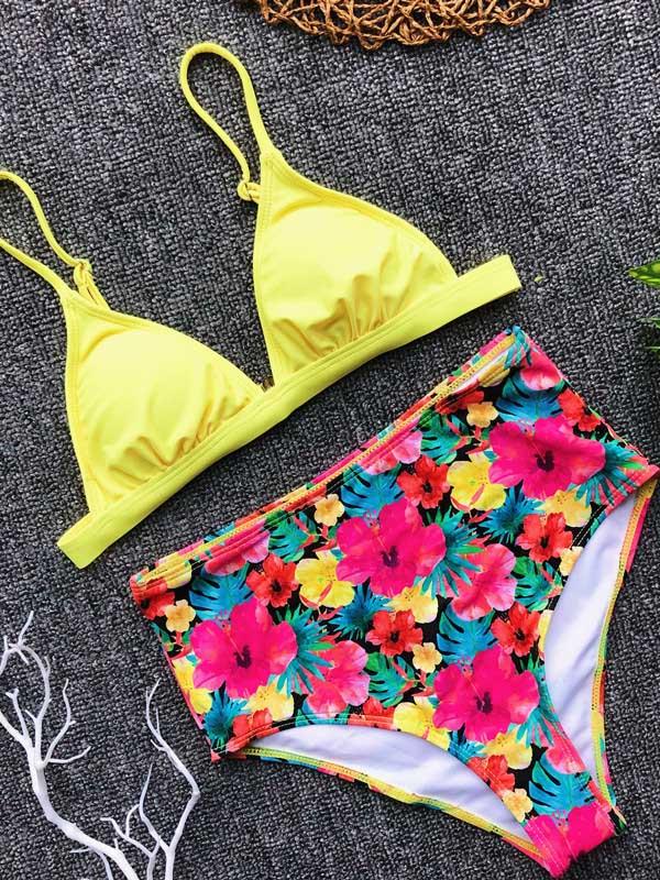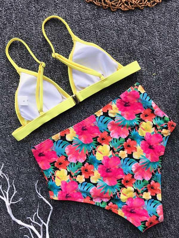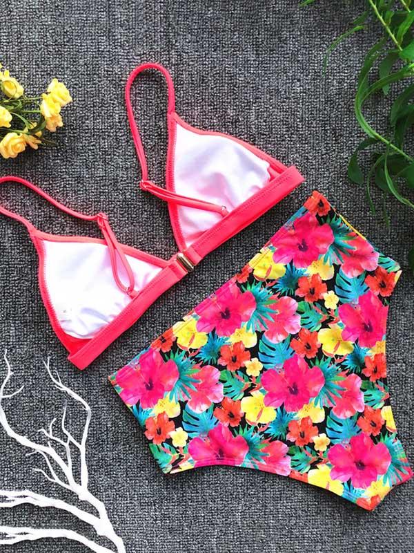 Spaghetti Strap Floral High Waist Bikini Swimsuit