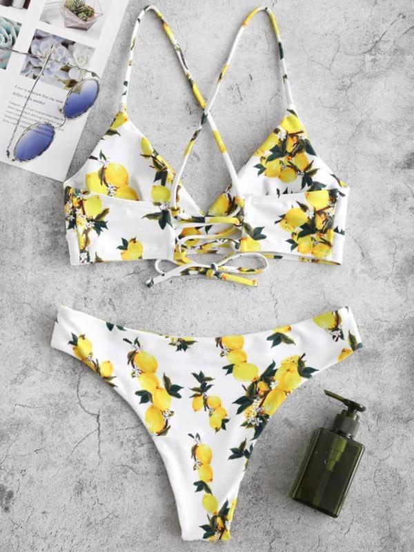 Spaghetti Straps Floral Bikinis Swimwear