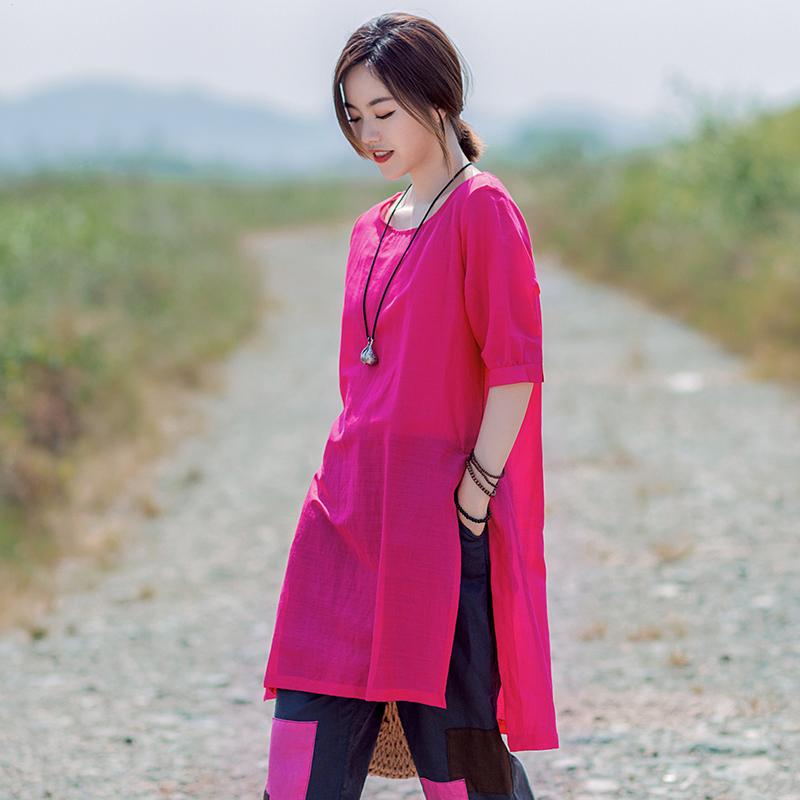 Split Casual Round Neck Long T-Shirt
