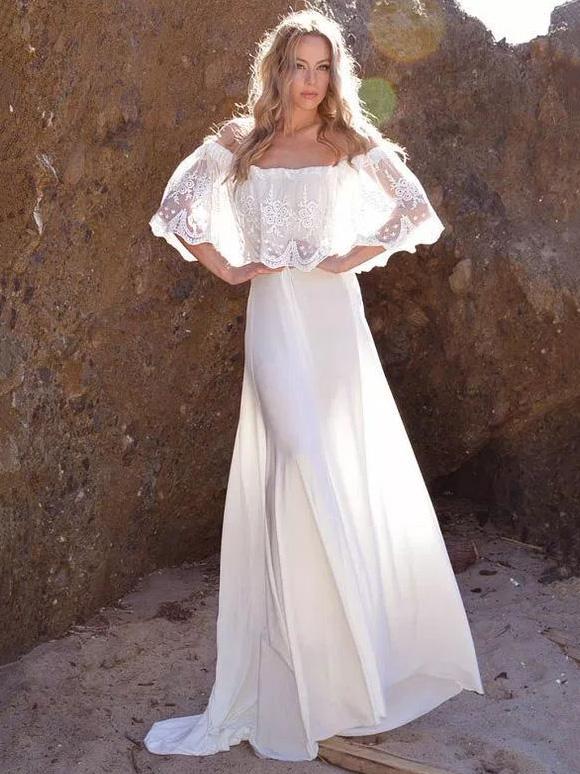 Split-joint Lacy Off-the-shoulder Maxi Dress