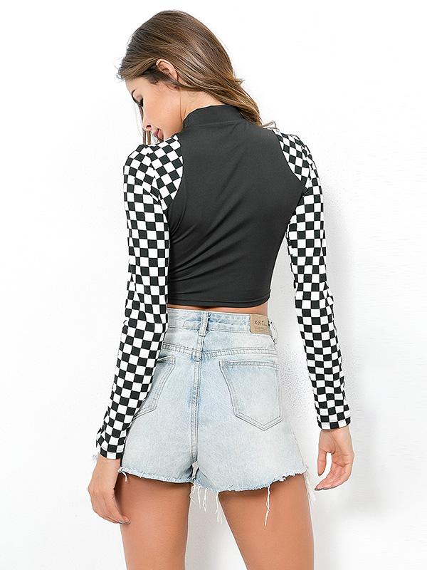 Split-joint Plaid Sexy Bandage Shirt Top