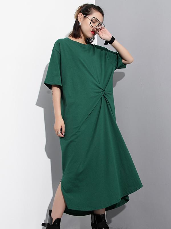 Split-side Solid Loose Cropped T-shirt Midi Dresses