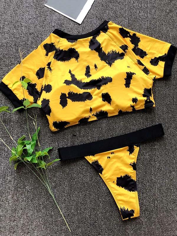 Sport Short Sleeves Bikinis Swimwear