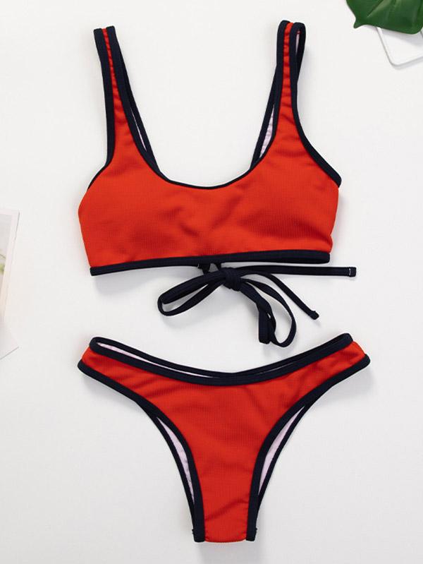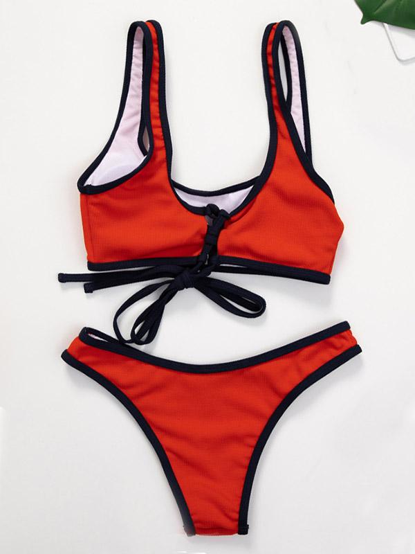 Sport-Style Solid Color Bandage Bikini Swimsuit