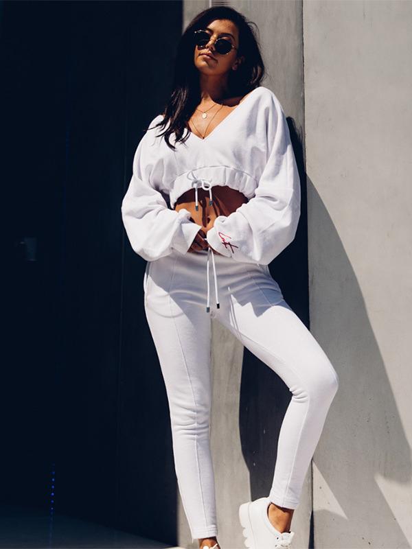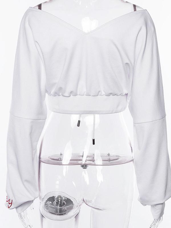 Sports V-neck Letter Embroidered Hoodies&sweatshirts Tops
