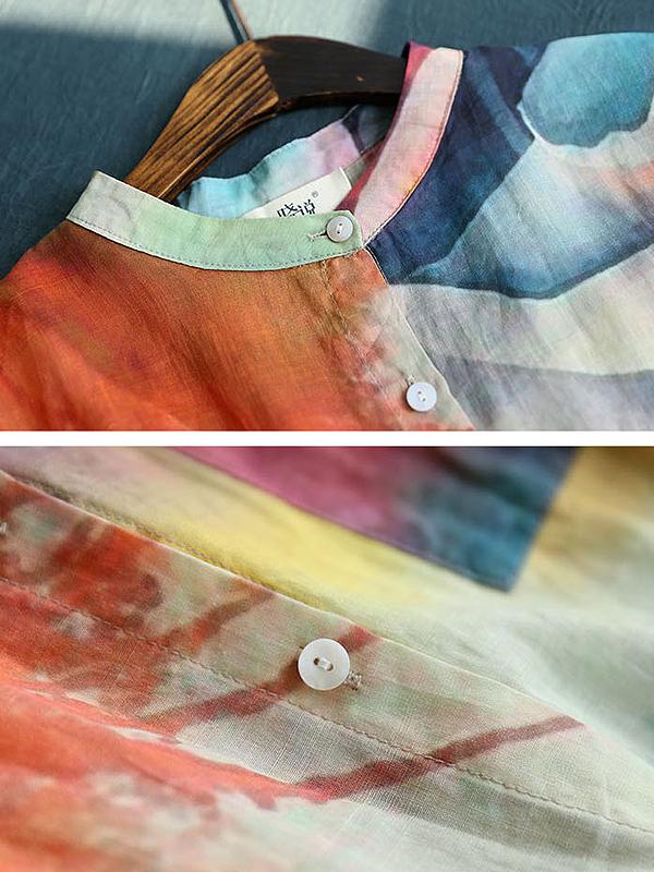 Stand Collar Casual Loose Printed Blouse