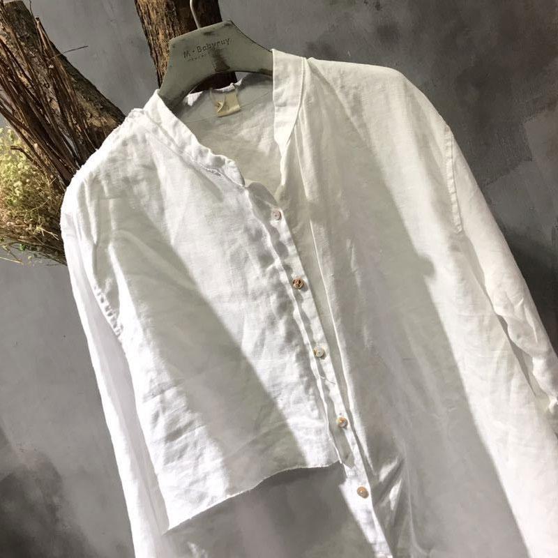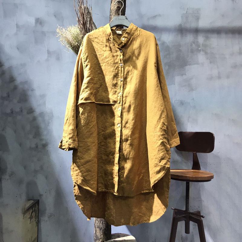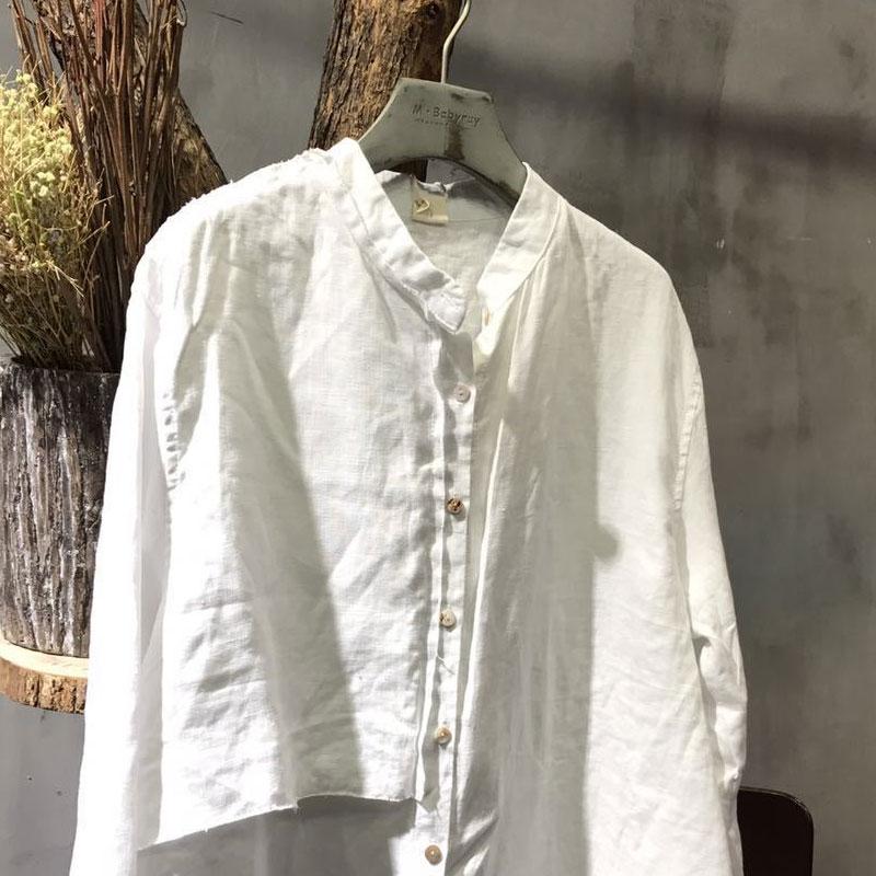 Featuring splicing white stand collar and long sleeves shirt, lightweight and flax fabric. Elegance and simplicity is the focus on design, is a casual wear wild single items.