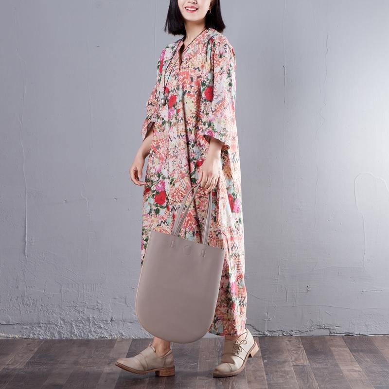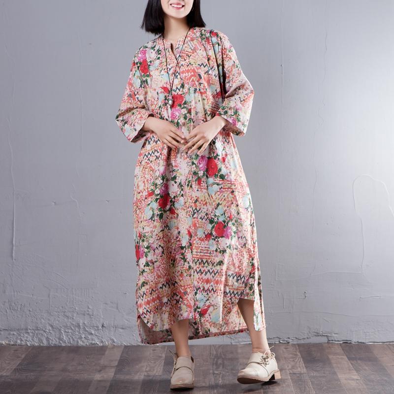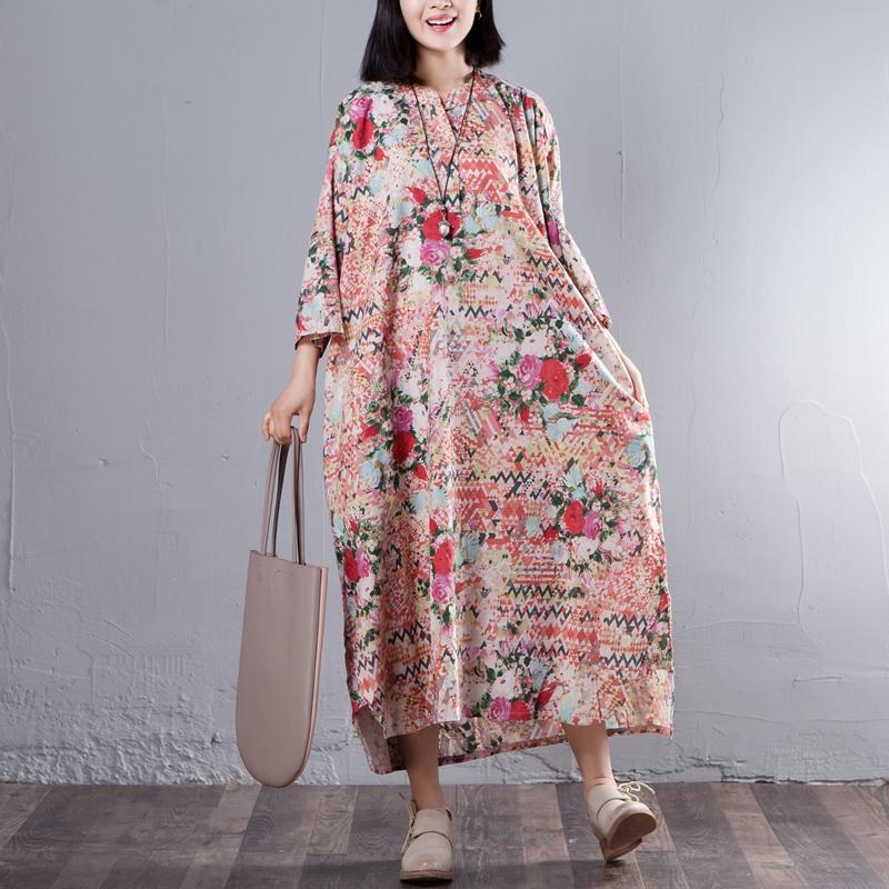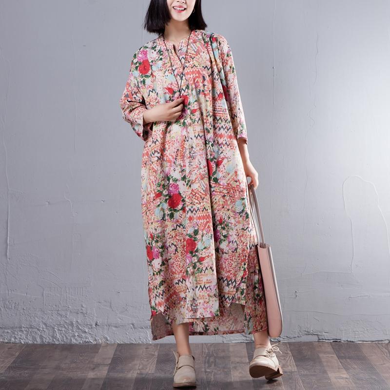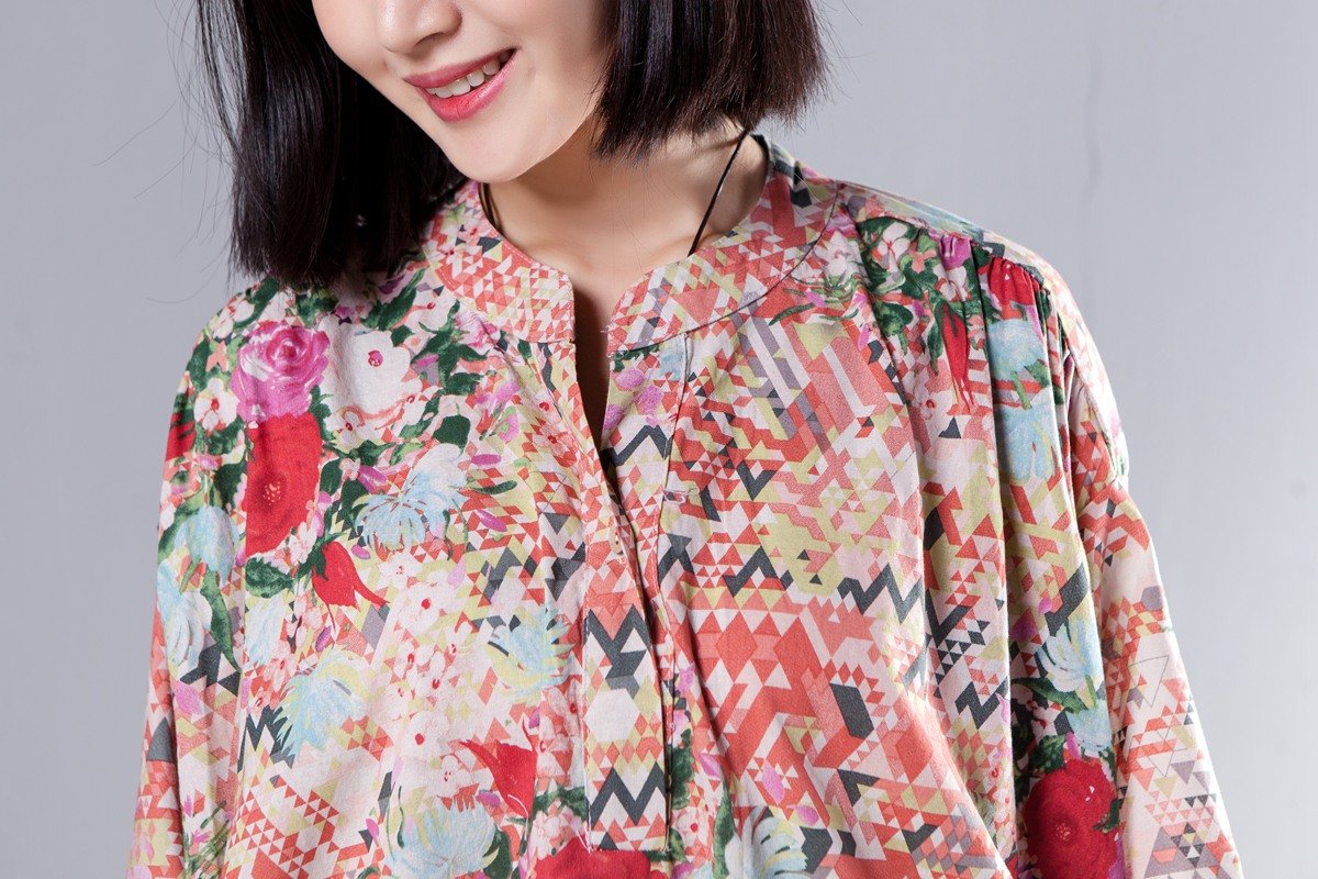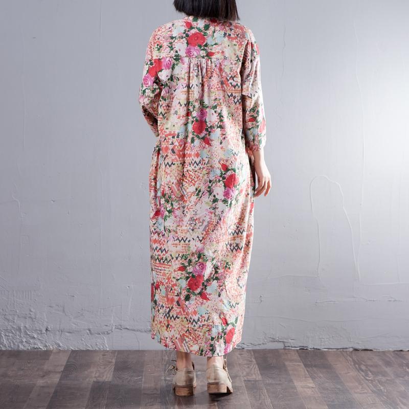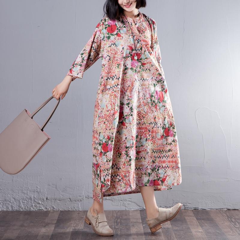 Stand Collar Three Quarter Sleeve Printed Loose Dress