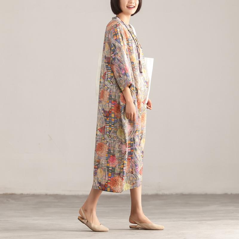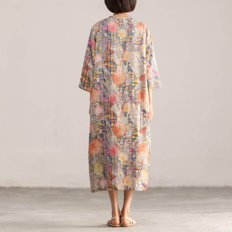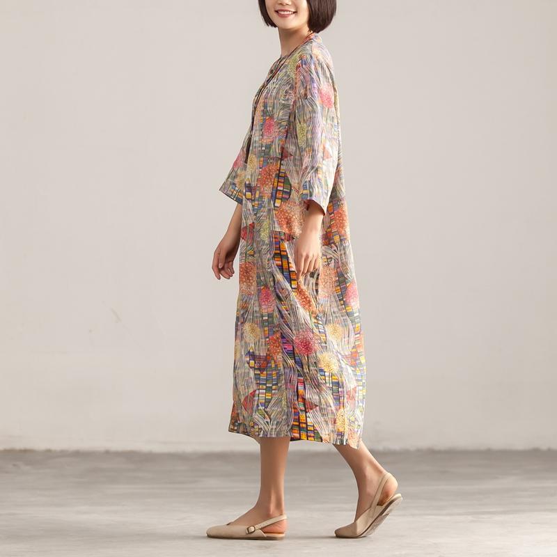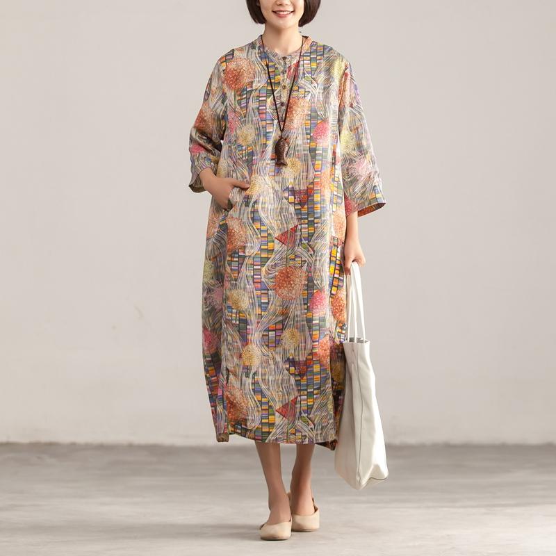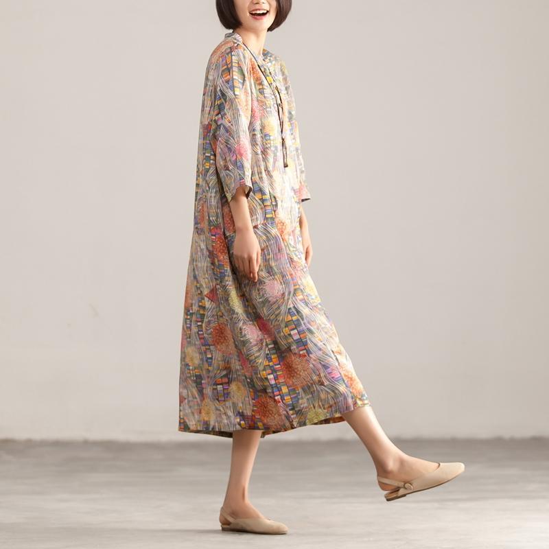 Stand Collar Three Quarter Sleeve Retro Printed Dress