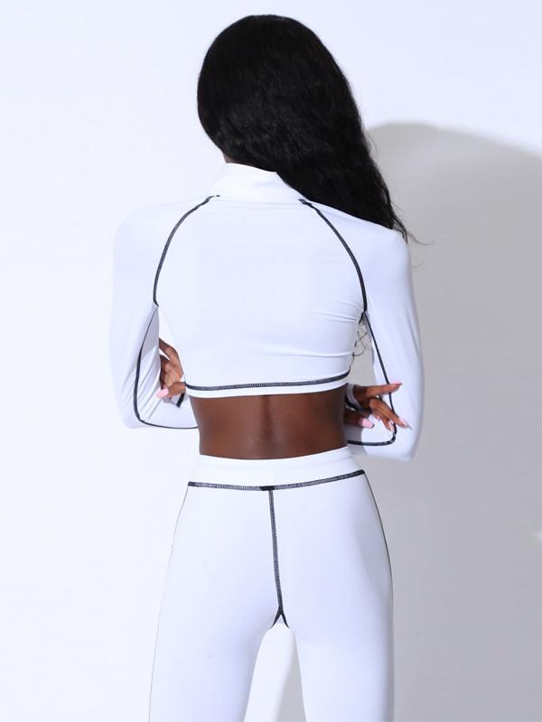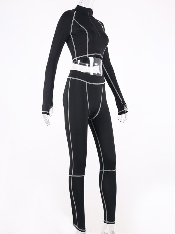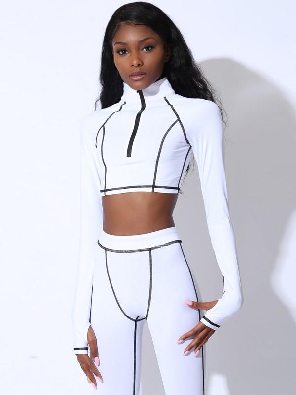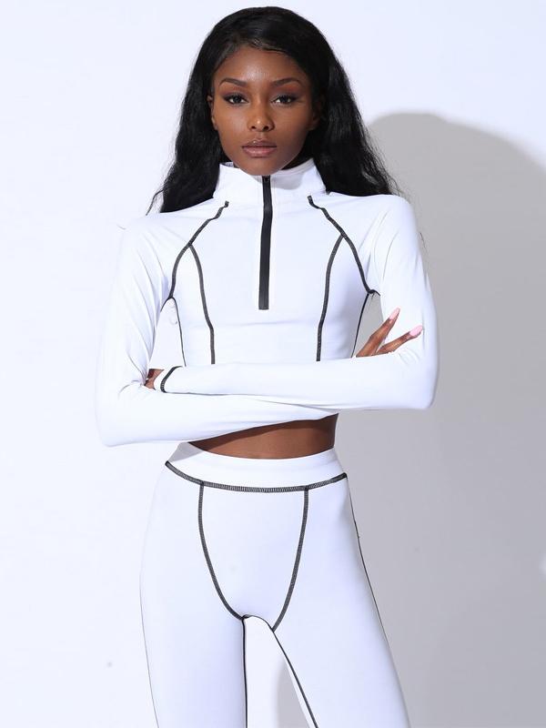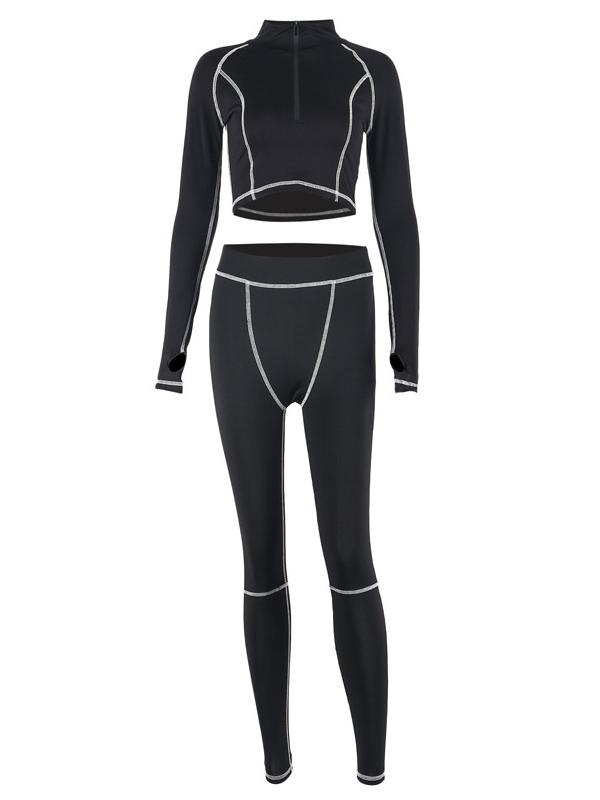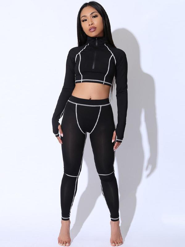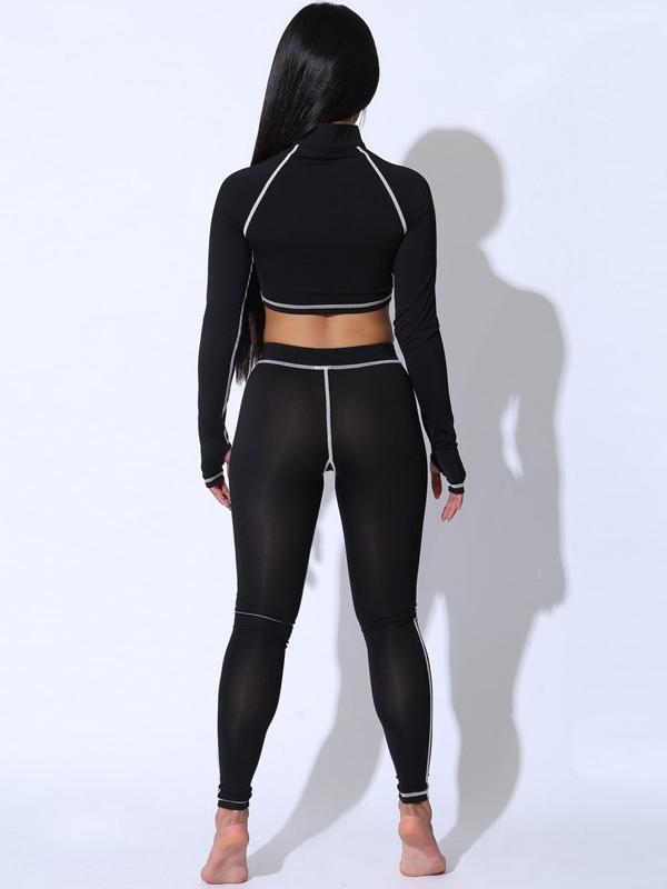Stand Collar Zipper Tees And Leggings Yoga Suits