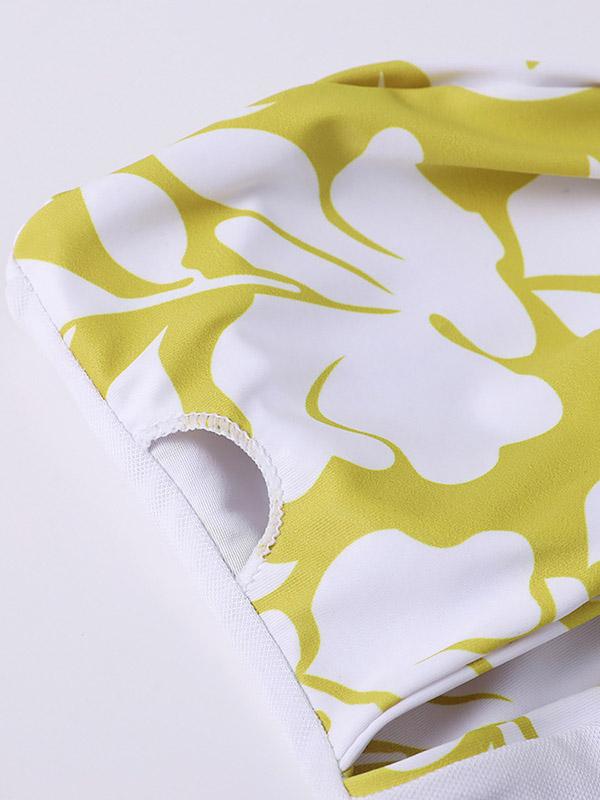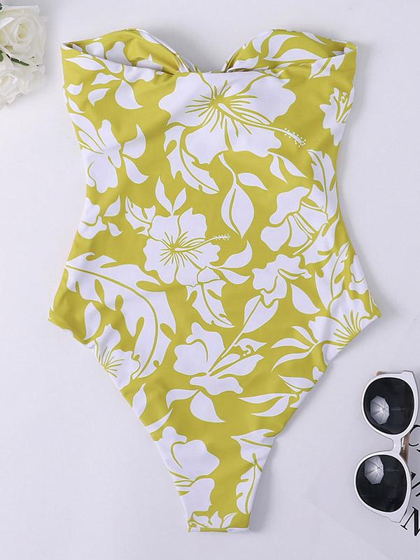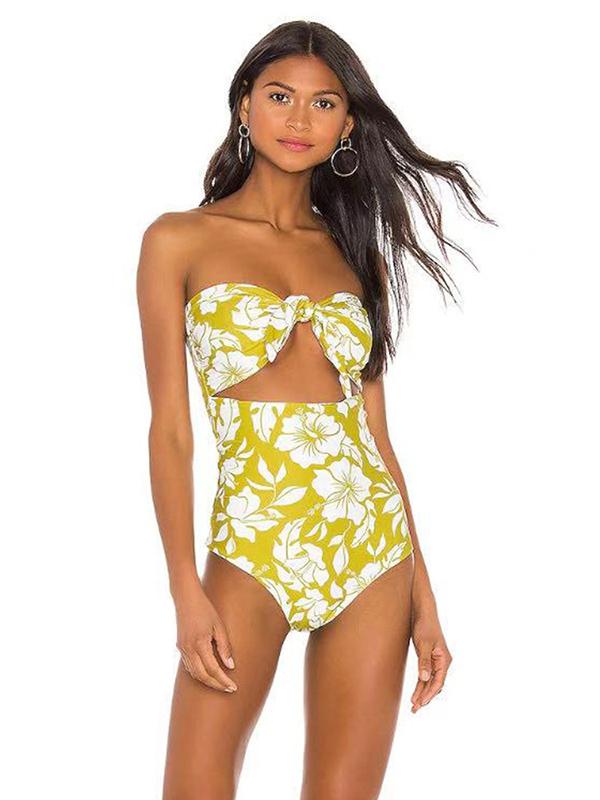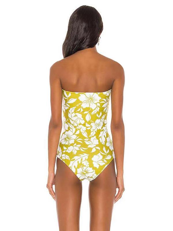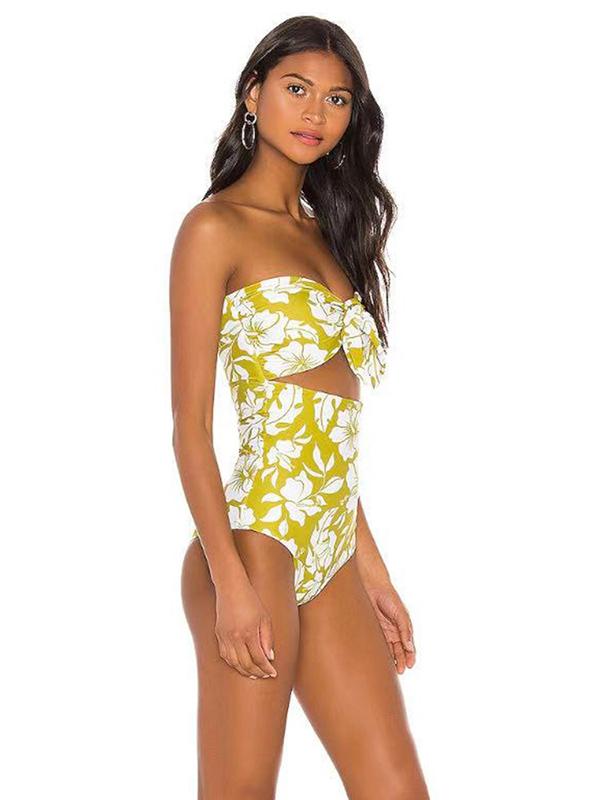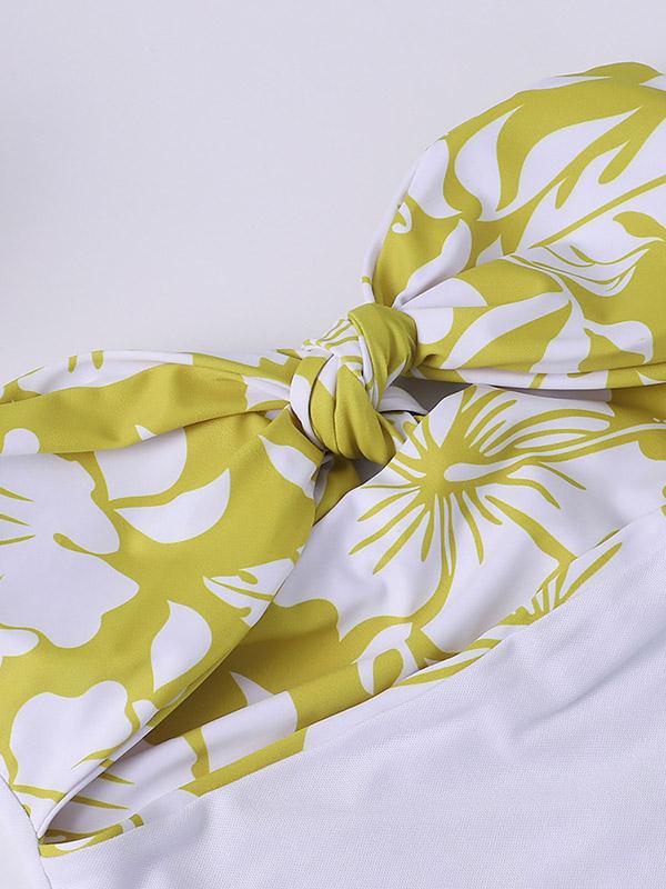Strapless Bowknot Floral Printed One-Piece Swimwear
