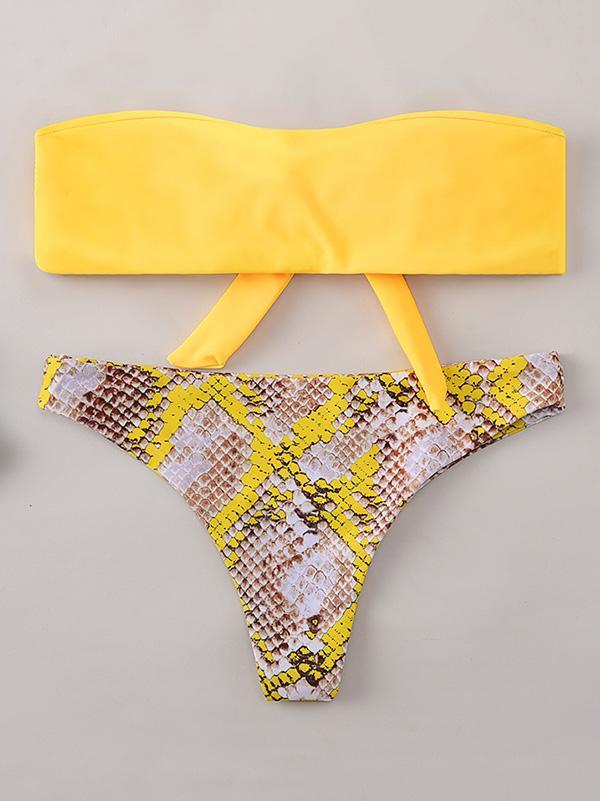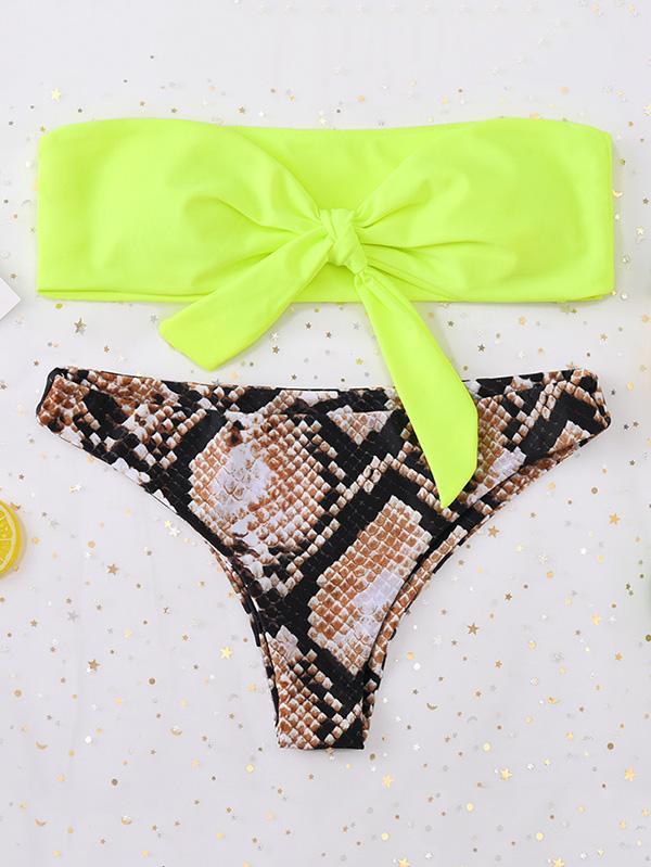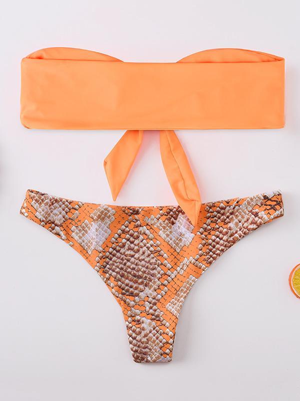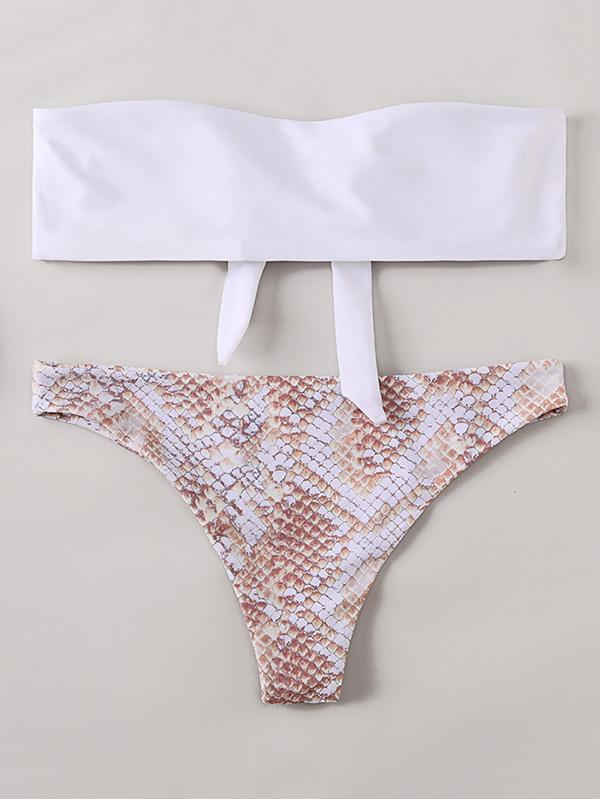 Strapless Knotted Snake Pattern Bikini Swimsuit