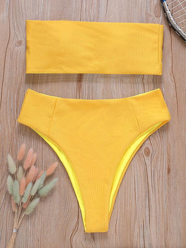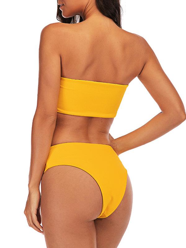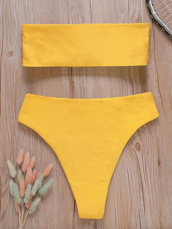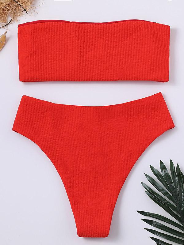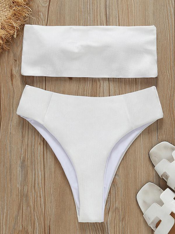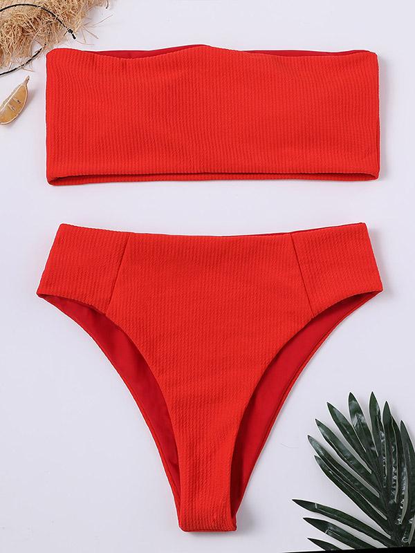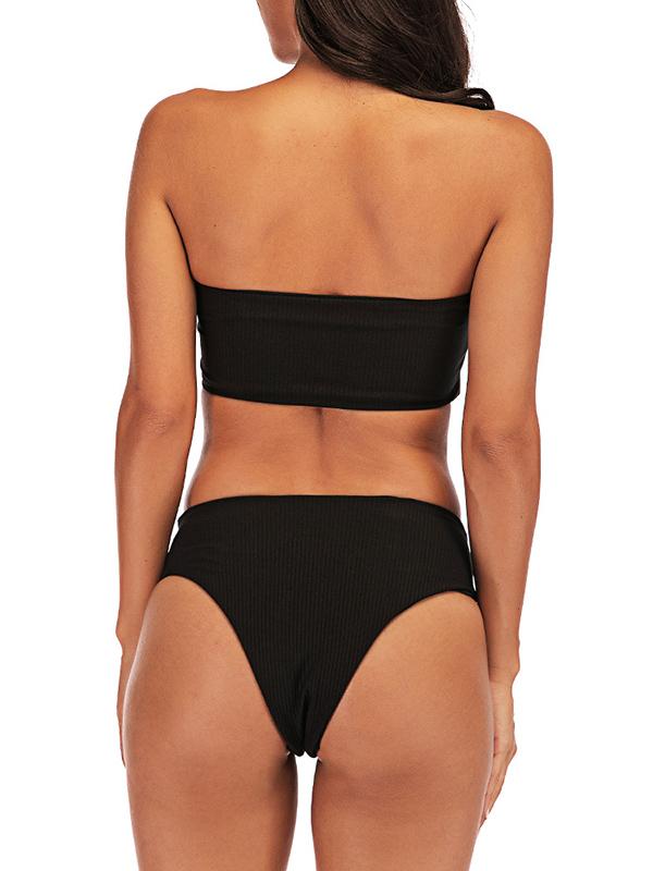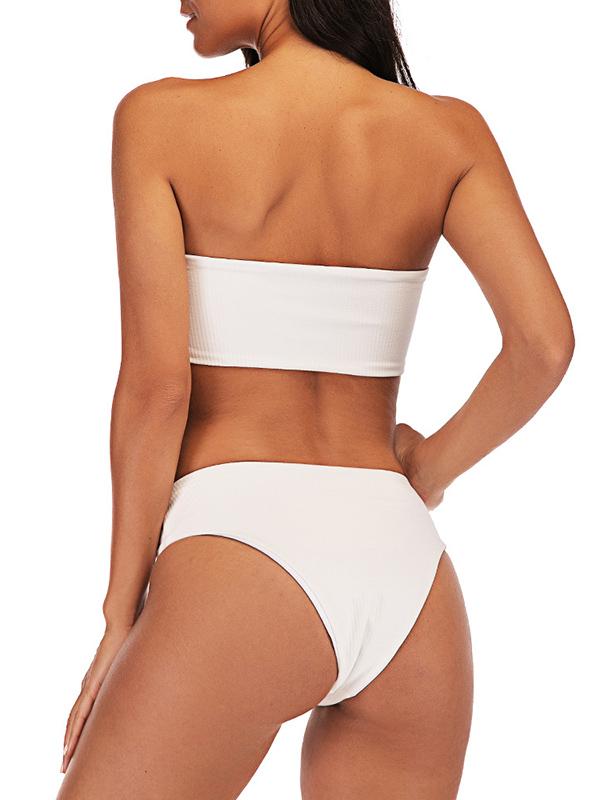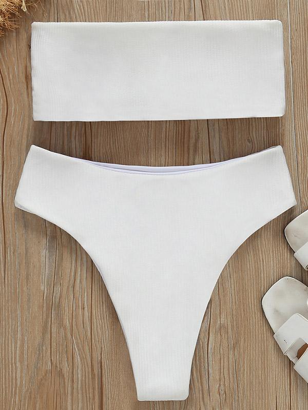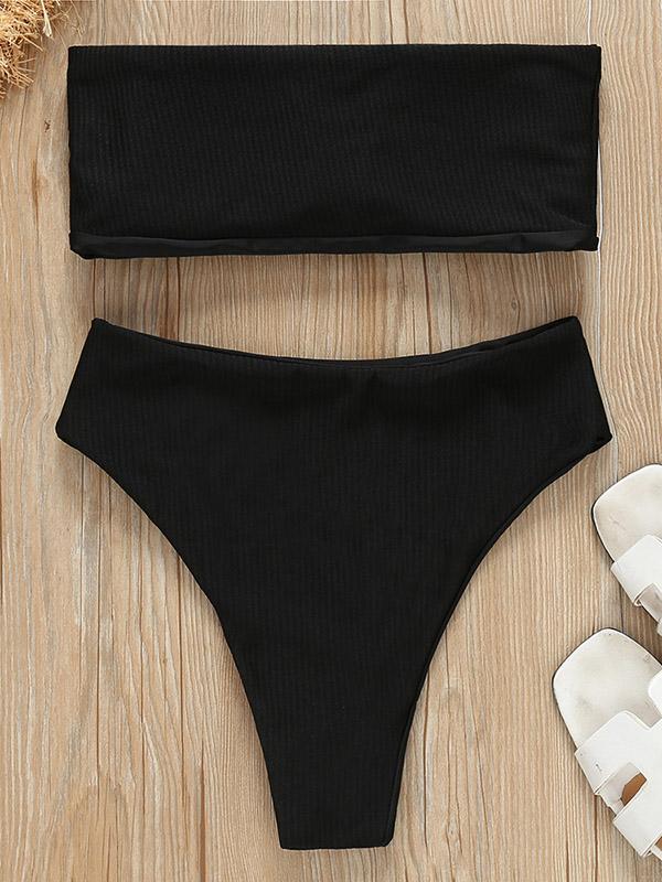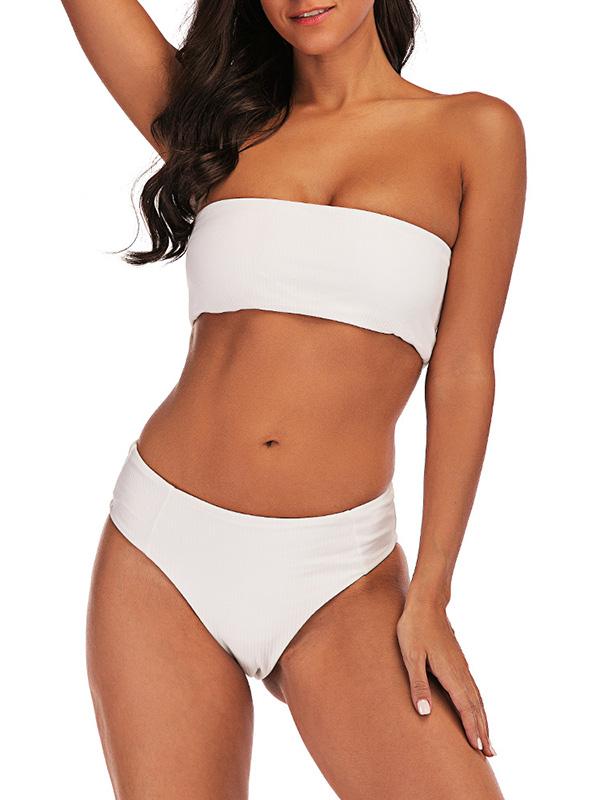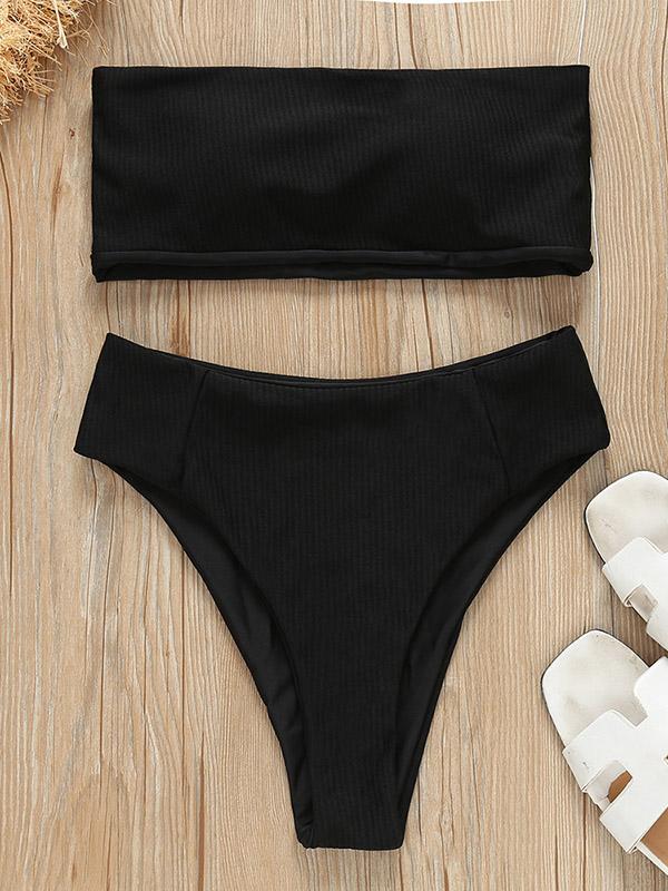 Strapless Ribbed High Waisted Bikini Swimsuit