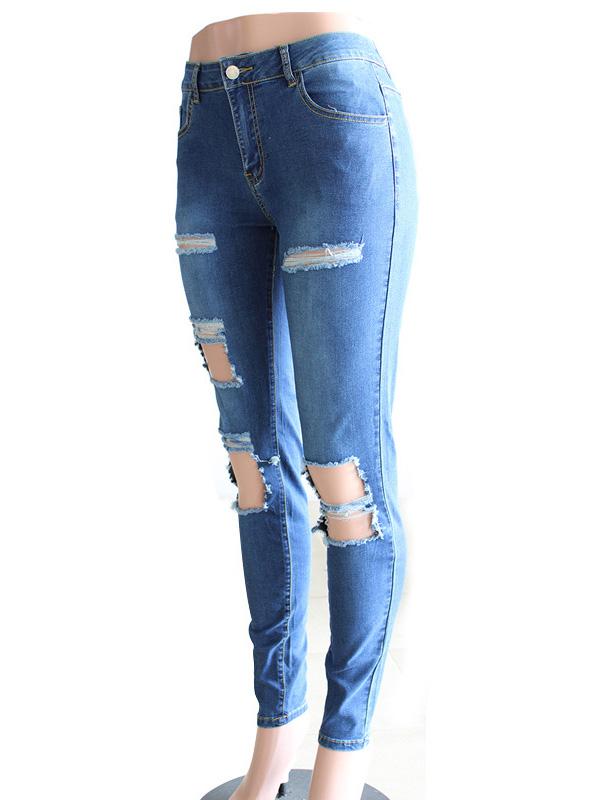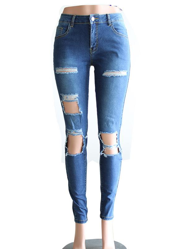 Street Pants Big Holes Torn Casual Trousers Skinny Pencil Pants