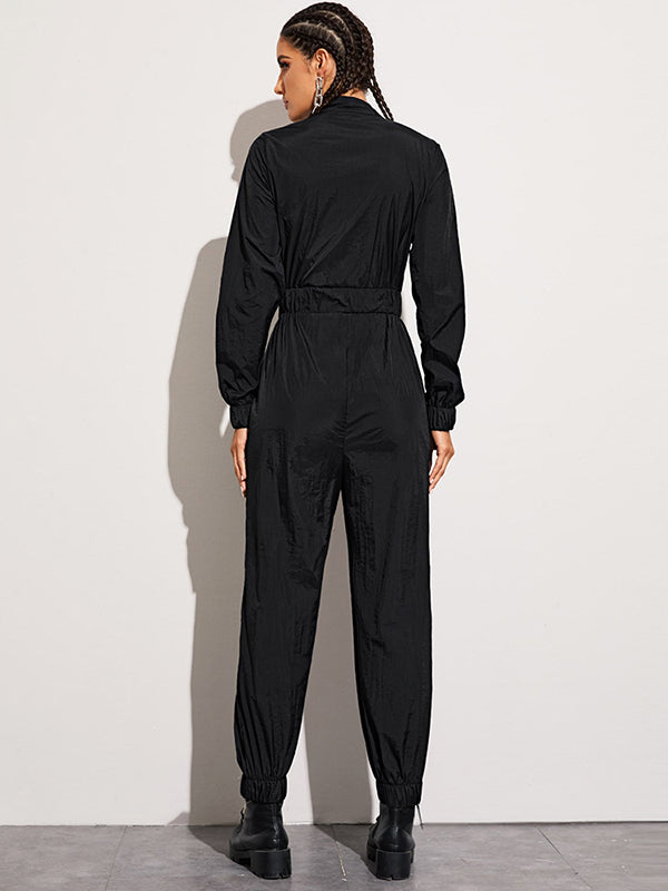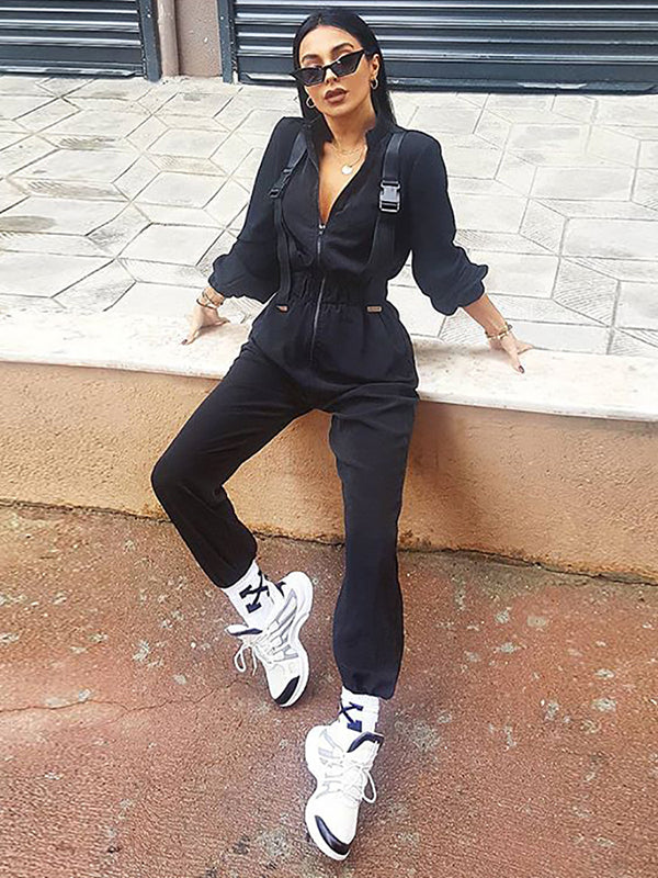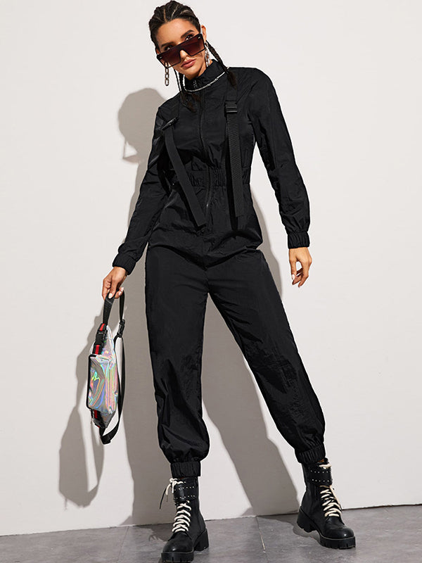 Street Schoolbag Buckle Long Sleeves Jumpsuits