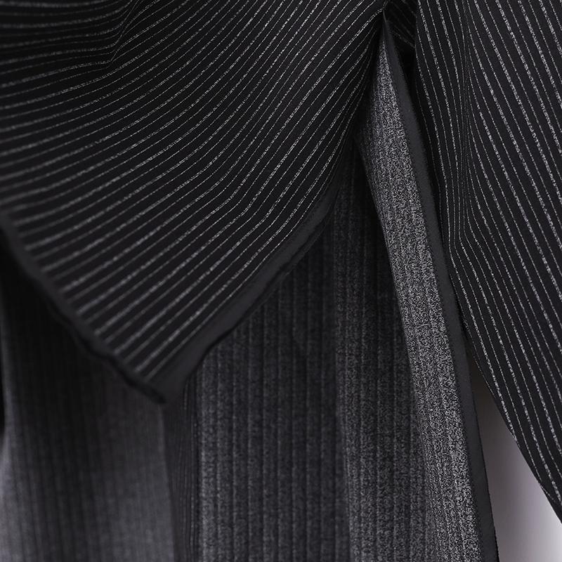 Stripe Hooded Women Loose Long Sleeve Side Slit Black Dress