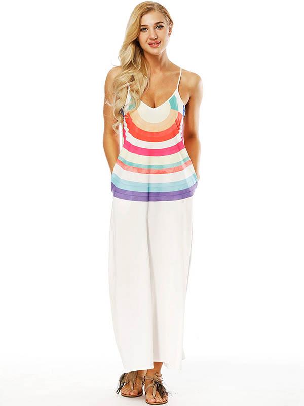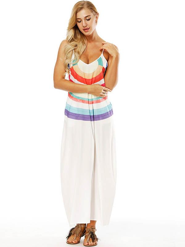 Striped Printed Slim Fit V-neck Pockets Maxi Dress