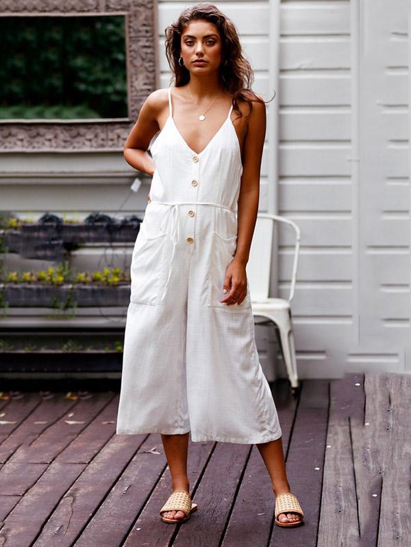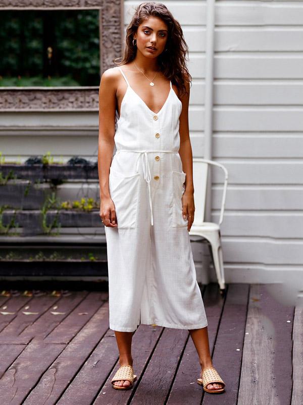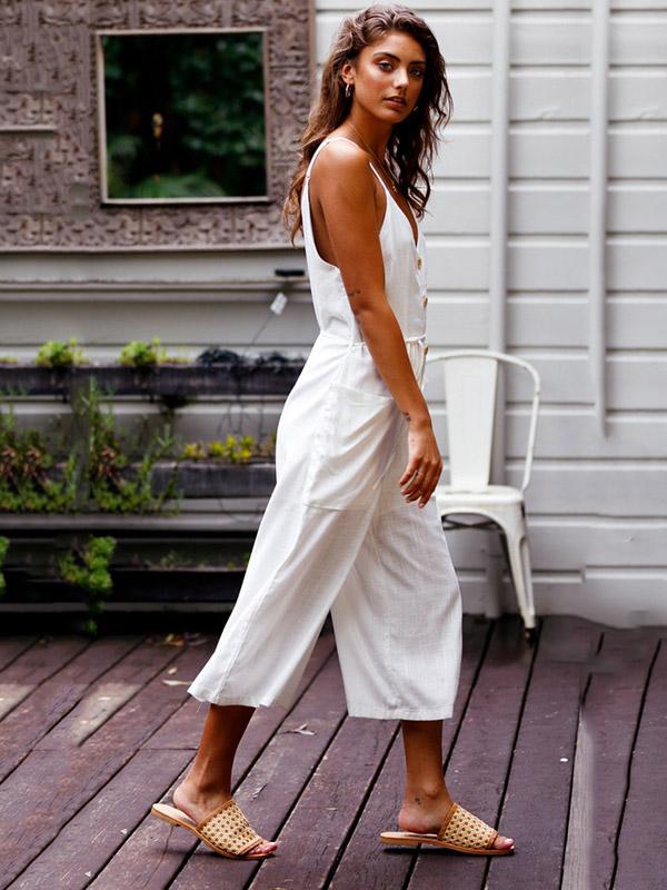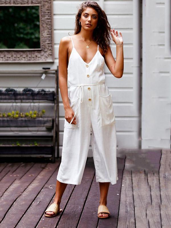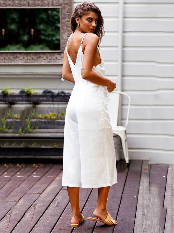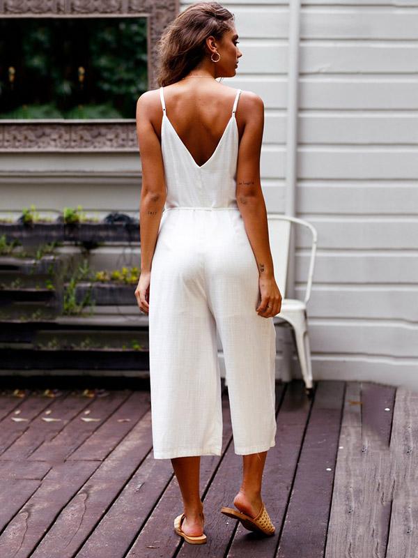 Striped Split-joint Wide Leg Sleeveless Jumpsuits
