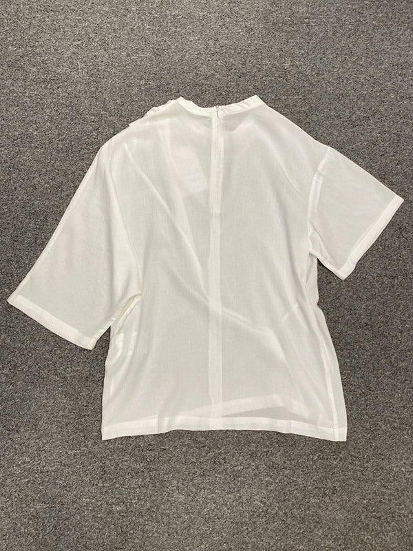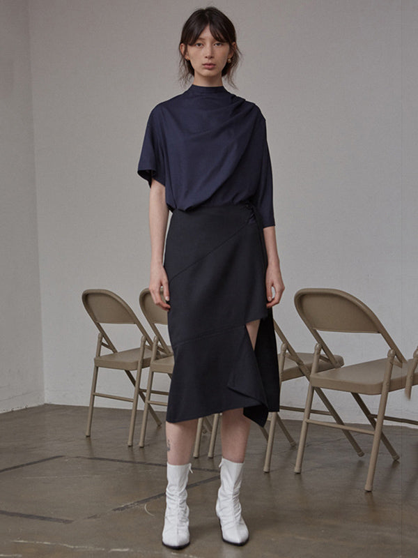 Stylish Asymmetric Round-Neck Solid Color Short Sleeves T-Shirt