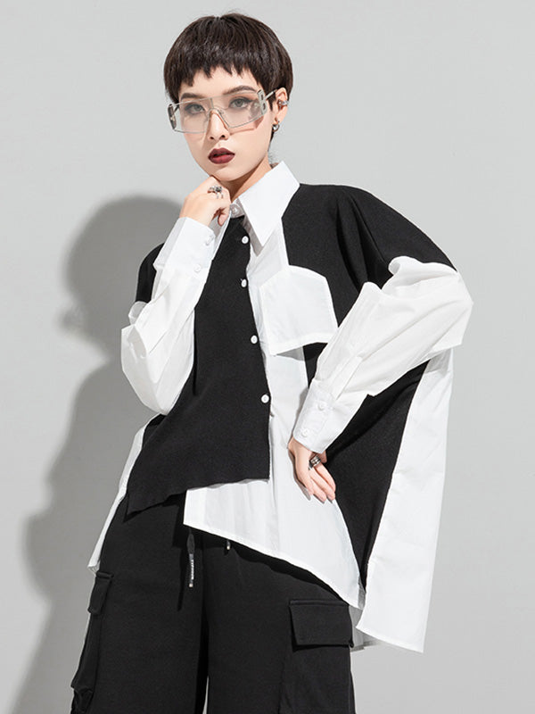 Stylish Asymmetric Split-Joint High-Low Irregular Clipping Split-Back Blouse