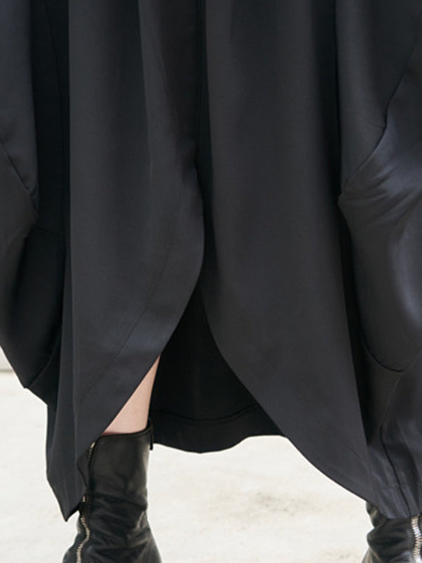 Stylish Black Cropped Split-Front High Waisted A-Line Skirts