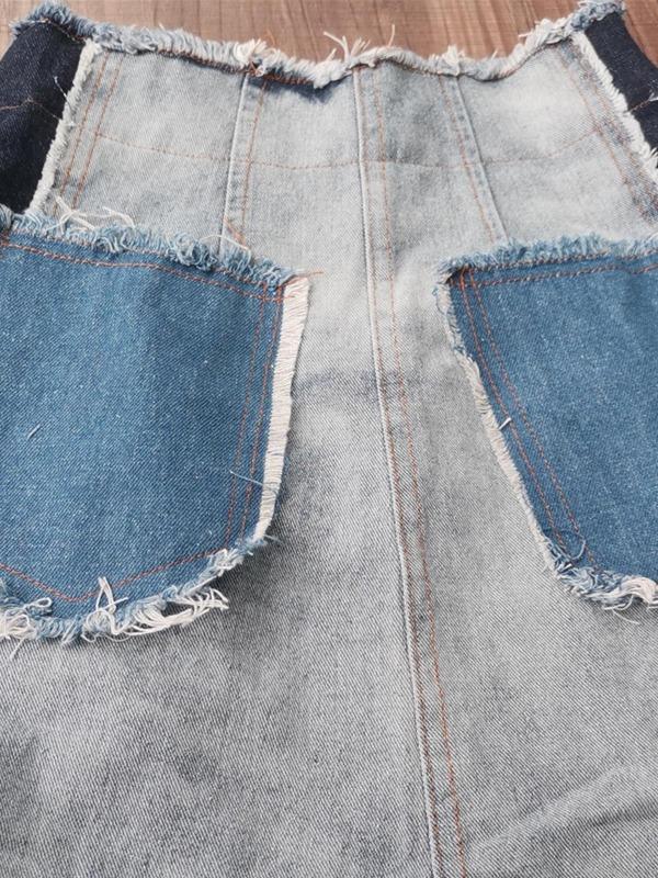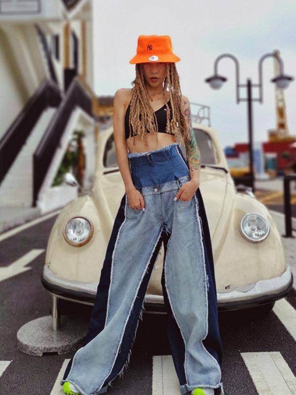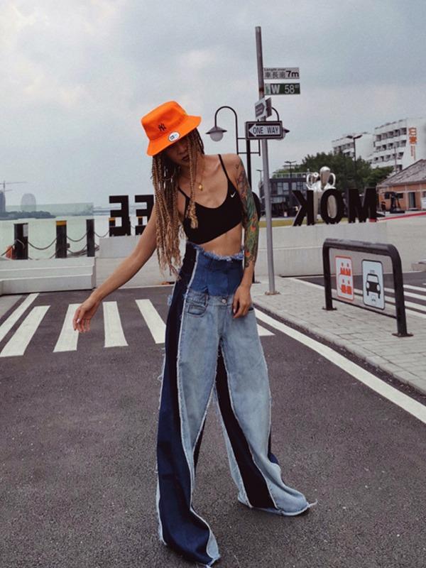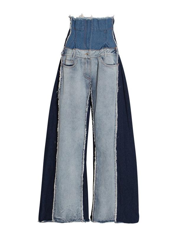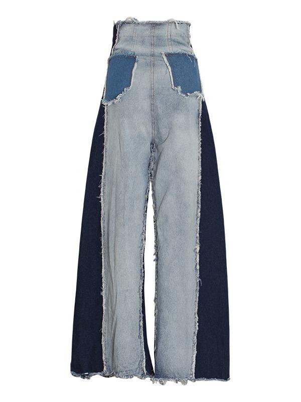 Stylish Empire Fringed Stitching Wide-Leg Jean Pants