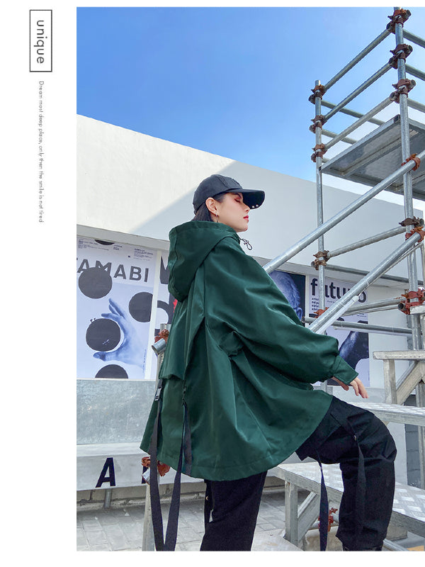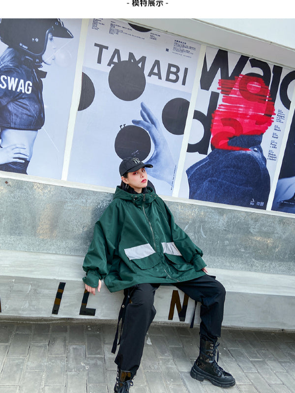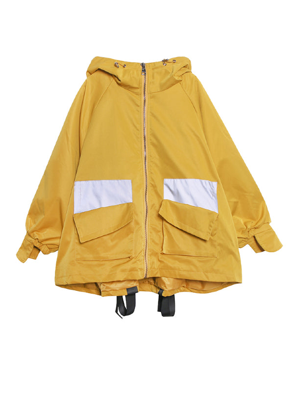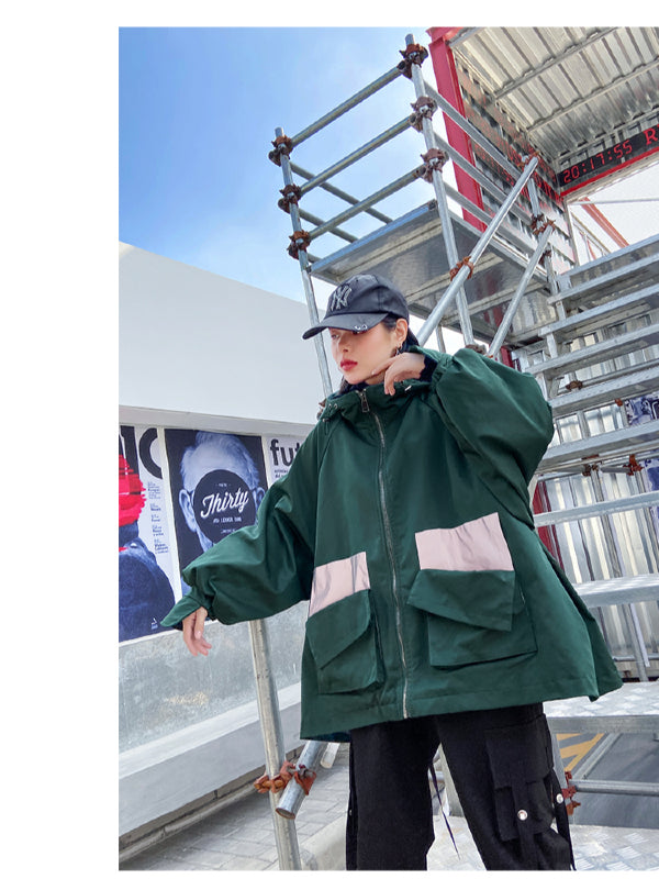 Stylish Loose Large Pocket Zipper Hood Outwear