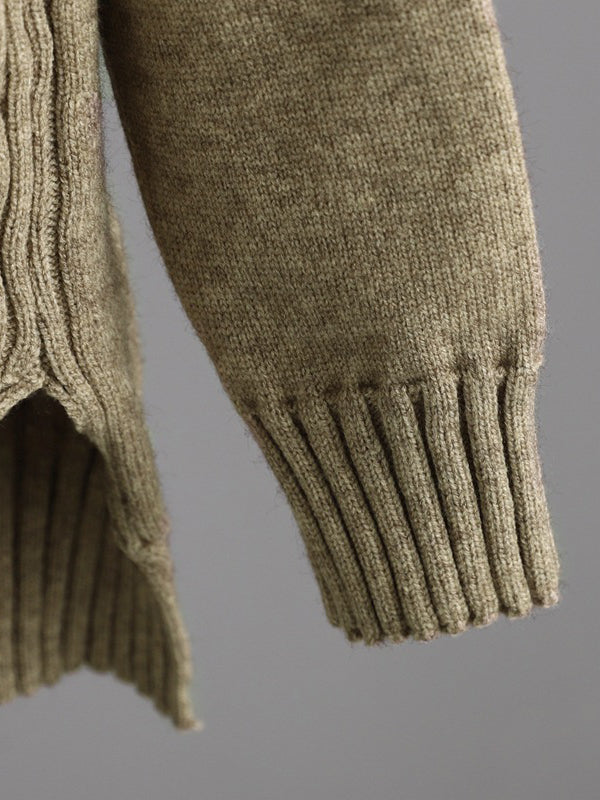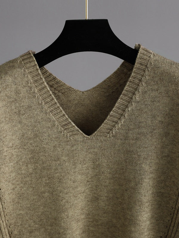 Stylish Loose Long Sleeves Solid Color V-Neck Sweater Tops& Wide Leg Pants Two Pieces Set