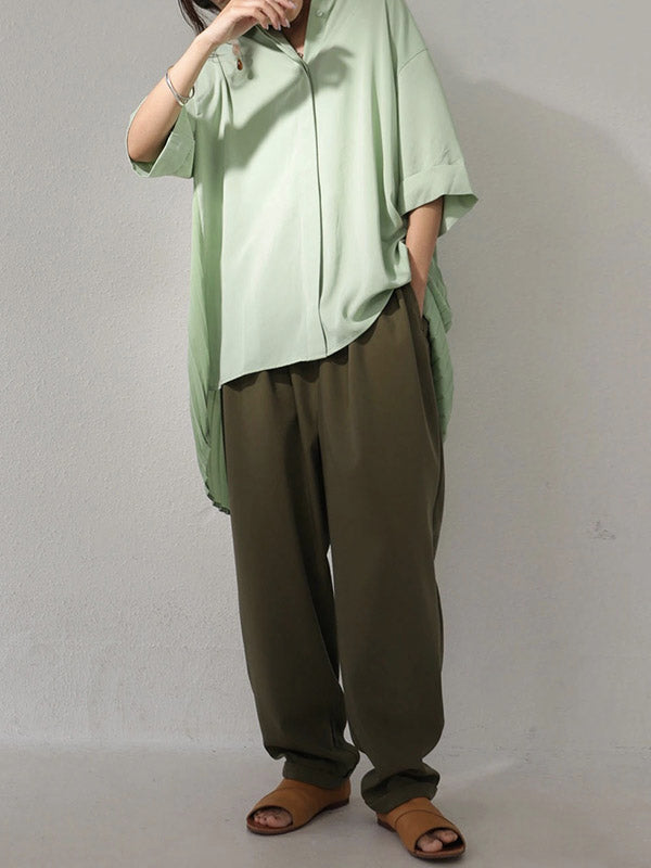 Stylish Solid Color High-Low Pleated Split-Joint Half Sleeves Blouse