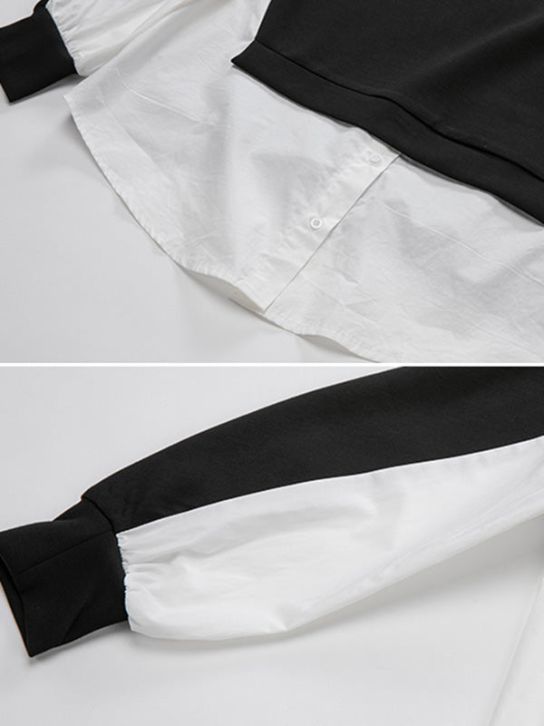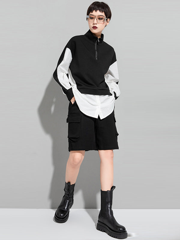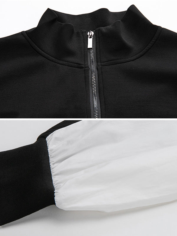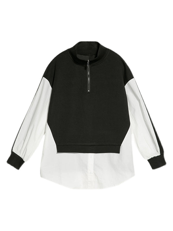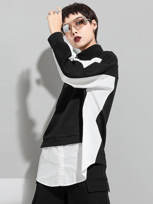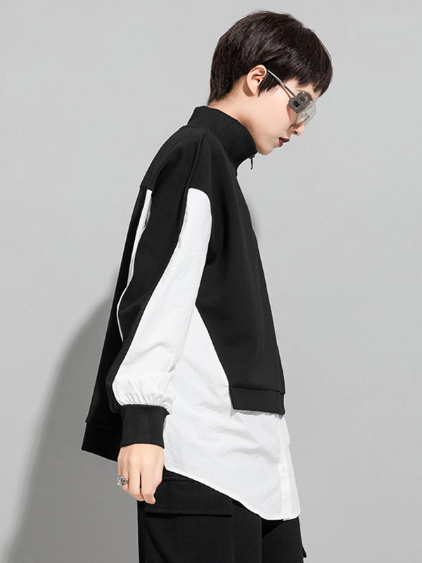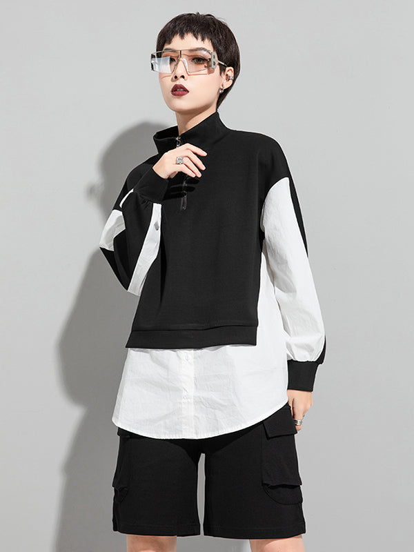 Stylish Split-Joint False Two Long Sleeves Zipper Stand Collar T-Shirt