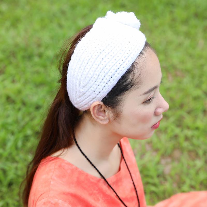 Stylish White Knitted Flower With Buttons Hair Bands For Women